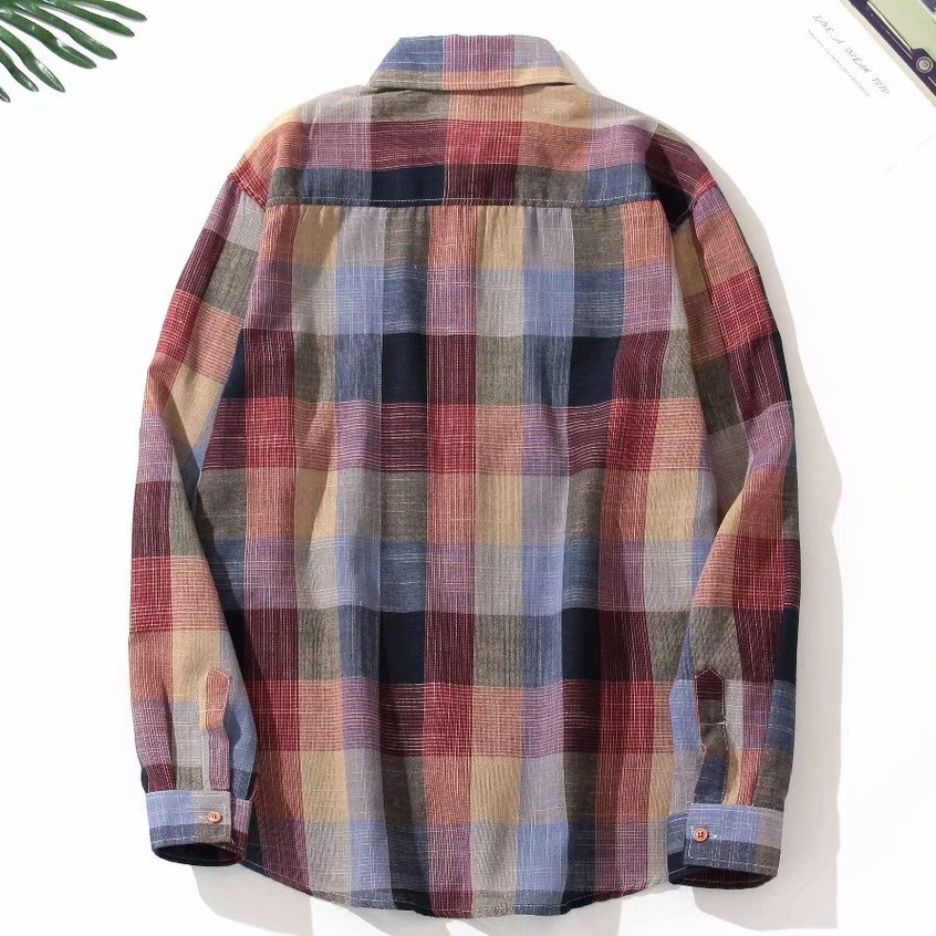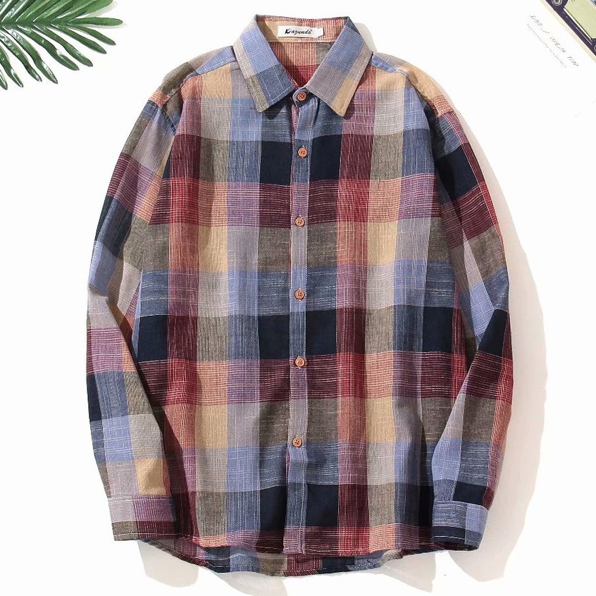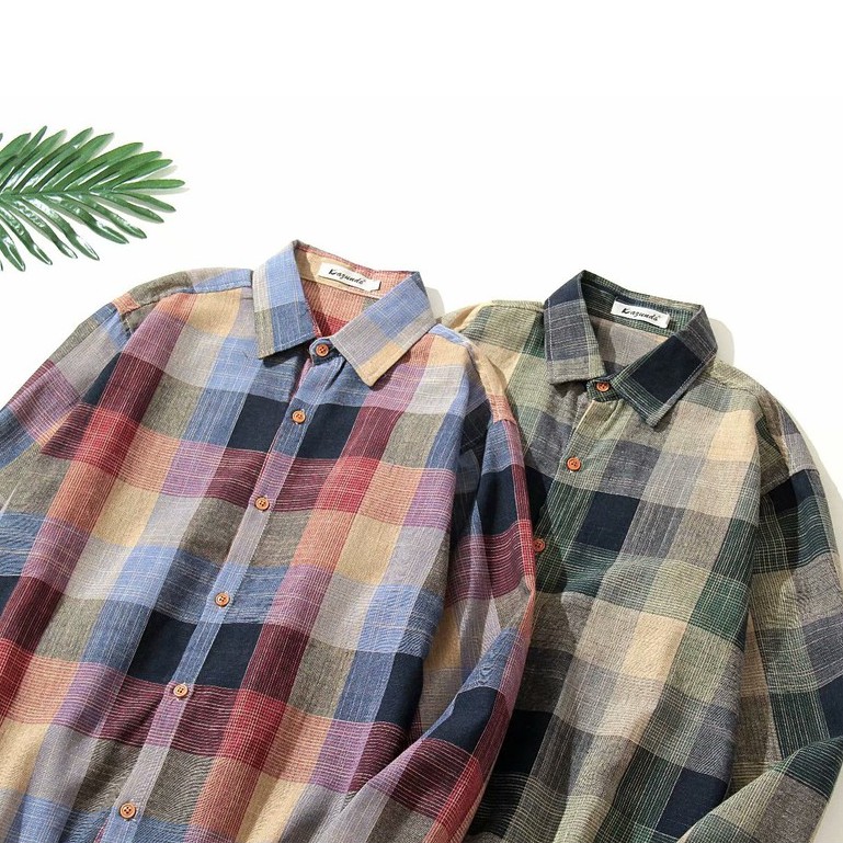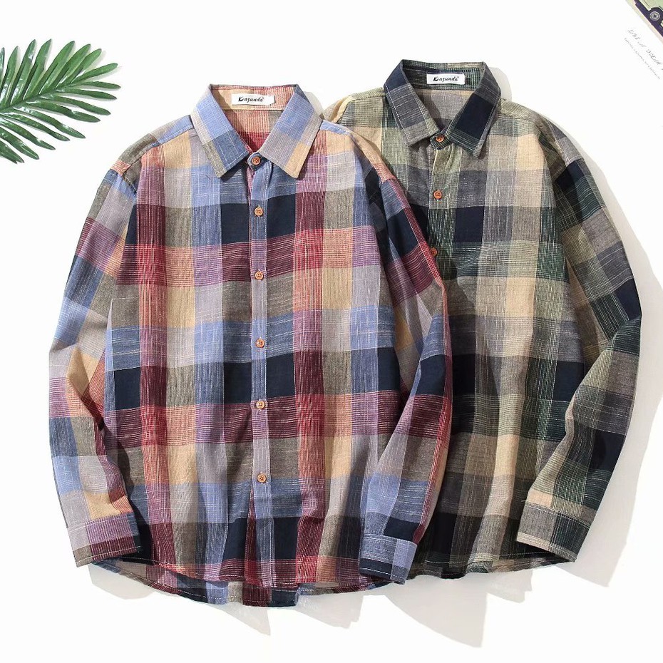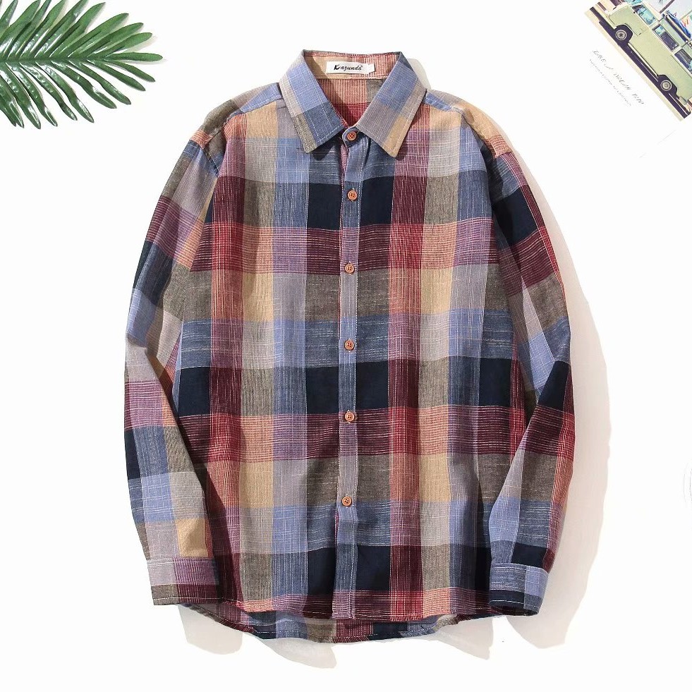 新款韓版小清新格子長袖襯衫男原宿風寬鬆休閑襯衣長袖防曬 休閒襯衫 格子襯衫(ZD002)【壹號站】