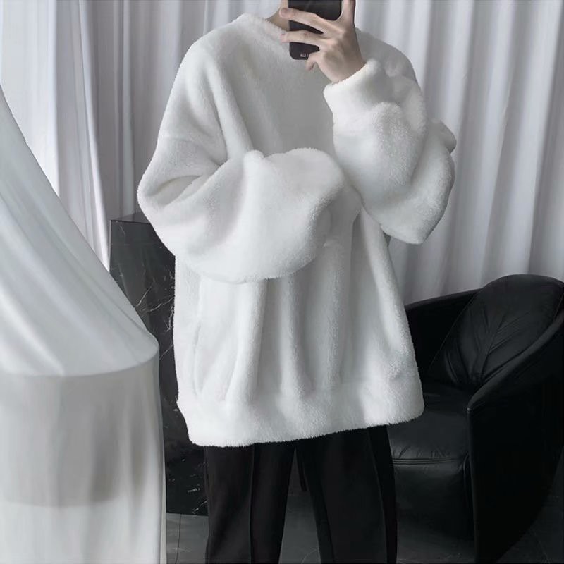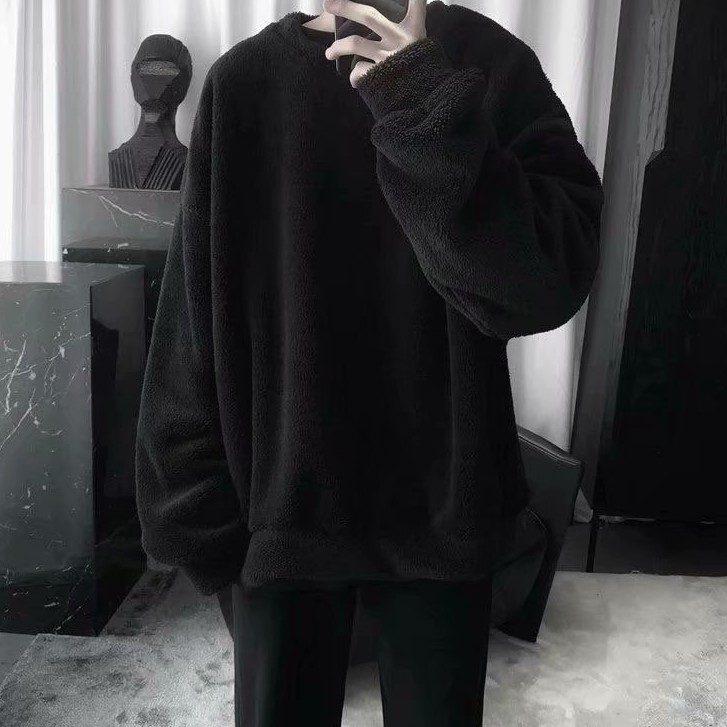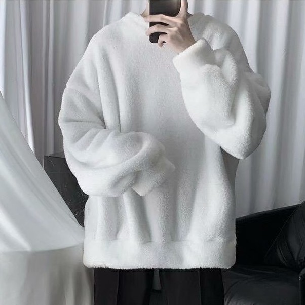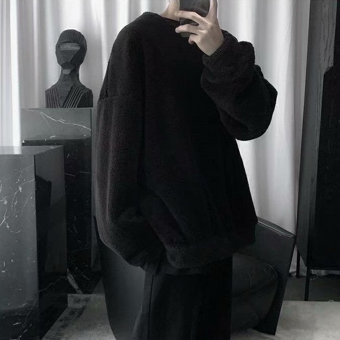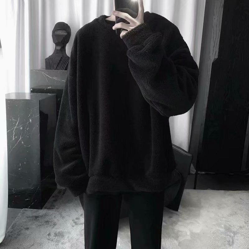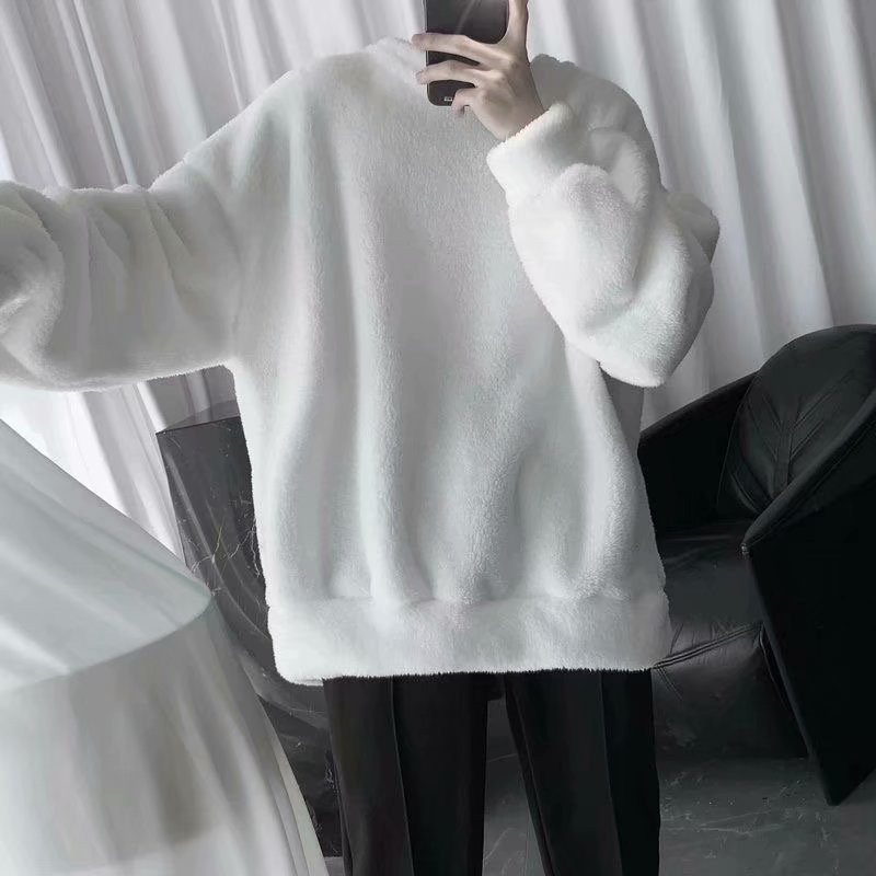 羊羔絨素色刷毛男生個性潮流休閒套頭T恤 秋冬新款寬鬆衛衣 情侶裝 大學T(SKSY800)【壹號站】