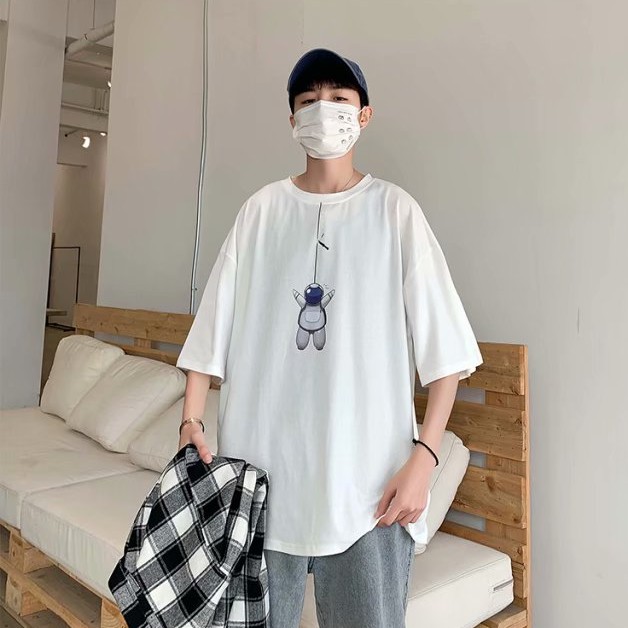 韓版夏季衣服 素t 潮流 日系 短袖T恤 男生 寬鬆 嘻哈 大尺碼 情侶 五分袖 印花T 短T(CCW135)【壹號站】