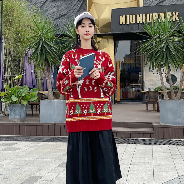 情侶毛衣 圓領套頭毛衣 日系小清新羊毛衣 韓版寬松針織衫 動物印花毛線衫 百搭針織衫(MWA40)【壹號站】