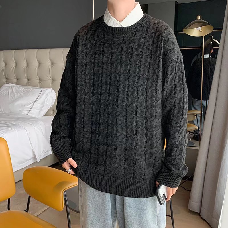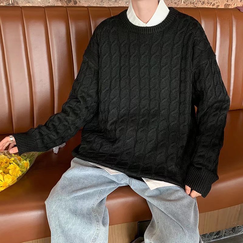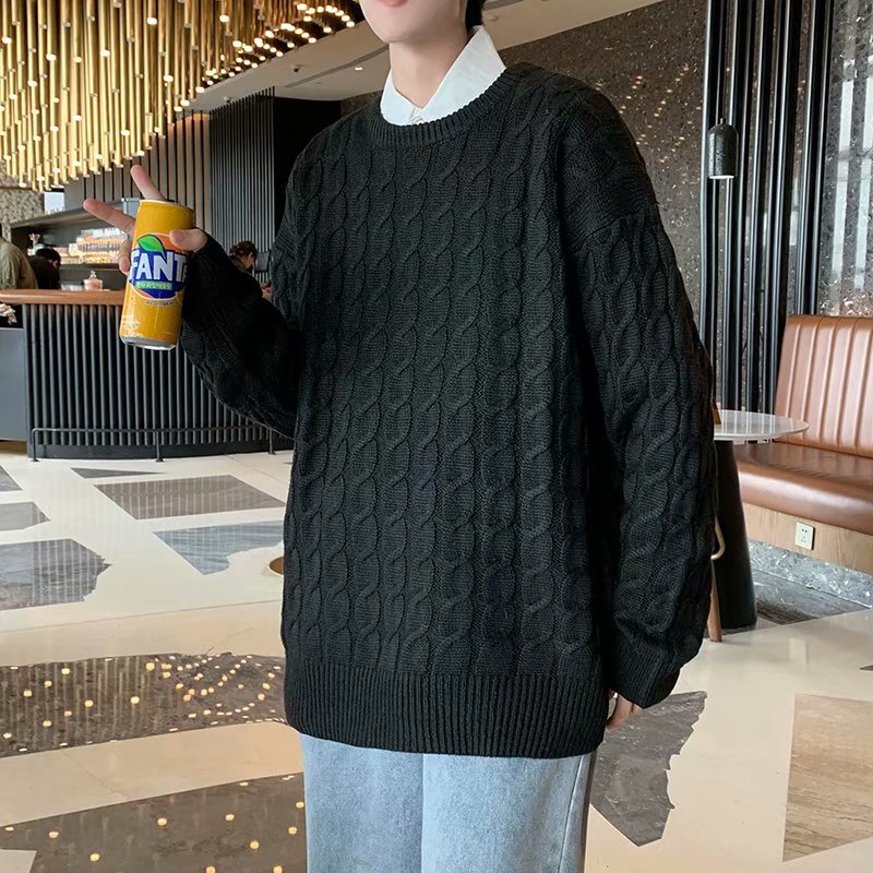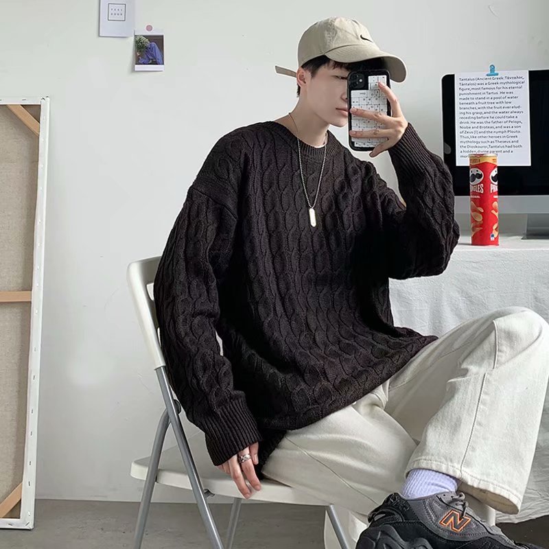 港風扭繩毛線衣 秋冬季新款毛衣 男士寬鬆 韓版 學生 打底針織衫 秋裝上衣 情侶款 男女同款(YB8805)【壹號站】