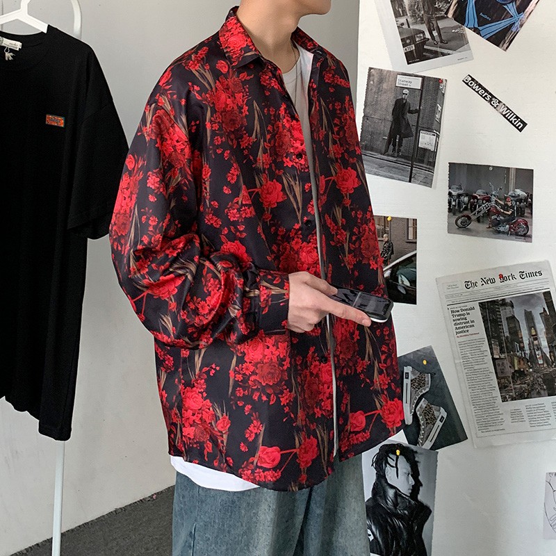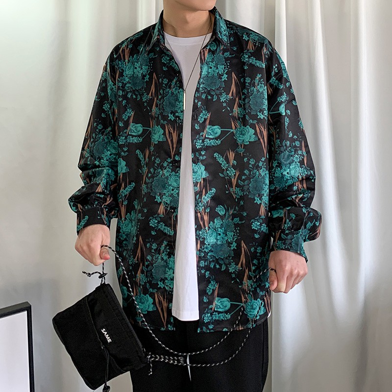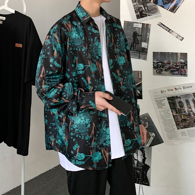 新款長袖襯衫 男寬鬆字母襯衫 港風休閒薄款夏威夷襯衫 男生襯衣 寬鬆沙灘花襯衫 長袖襯衫(SCC063)【壹號站】