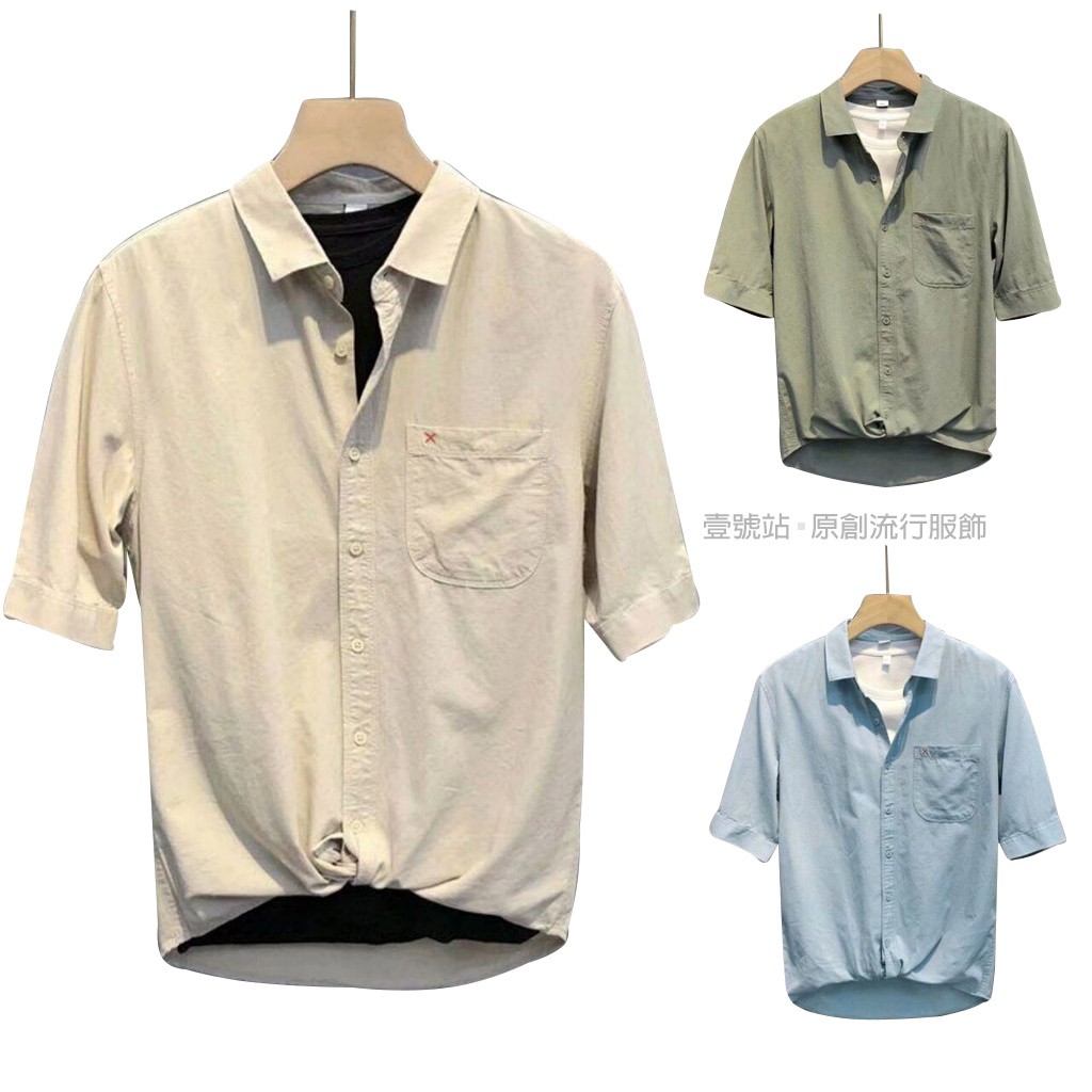 日系百搭男生襯衫 工裝襯衫男 多口袋襯衣 純色工裝五分袖 短袖襯衣 男生衣著 (JH8792)【壹號站】
