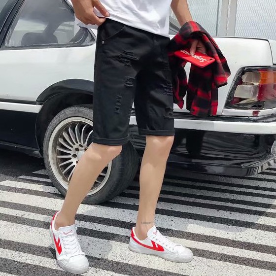 潮流破洞牛仔短褲 百搭男生短褲 街頭風格破牛仔褲 破褲 膝上短褲 五分短褲 休閒短褲(GE010)【壹號站】