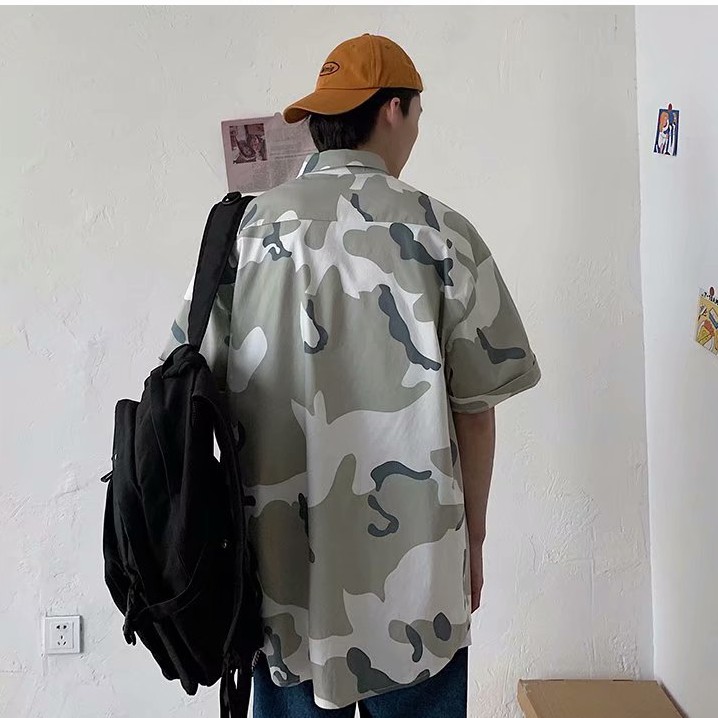 迷彩襯衫不規則 工裝襯衫 滿版 花襯衫 百搭 日式 花草 短袖 寬鬆襯衫 情侶襯衫 短袖襯衫【壹號站】(JH1141)