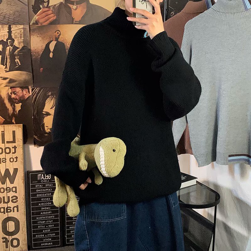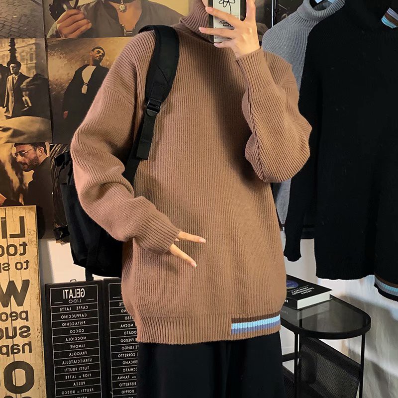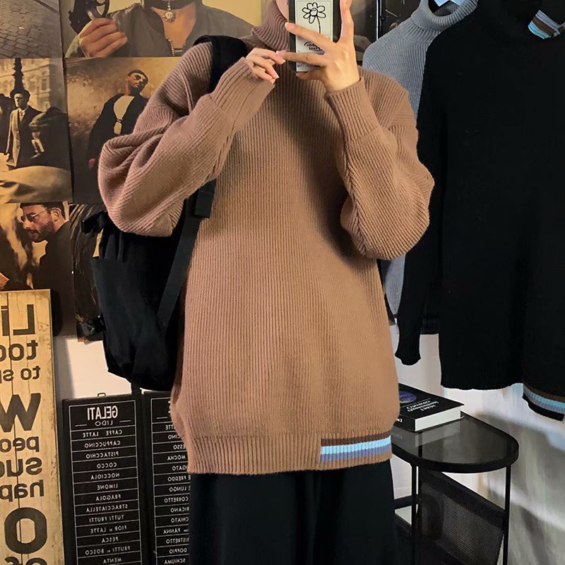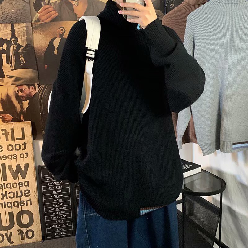 韓國高領長袖毛衣 寬鬆長袖毛衣 男生拼接針織毛衣 修身毛衣 男高領上衣 男毛衣 秋冬必備(FWMY9005)【壹號站】