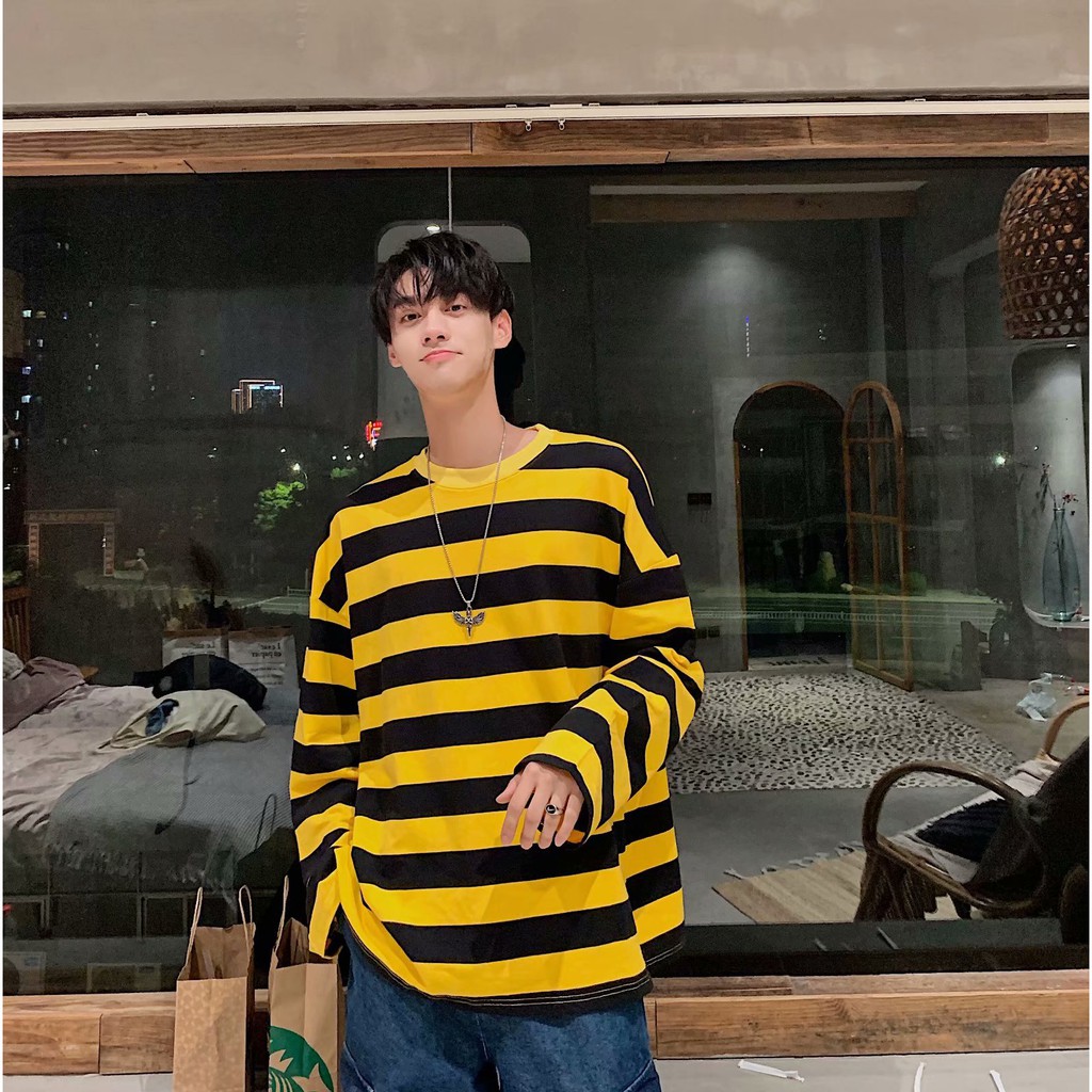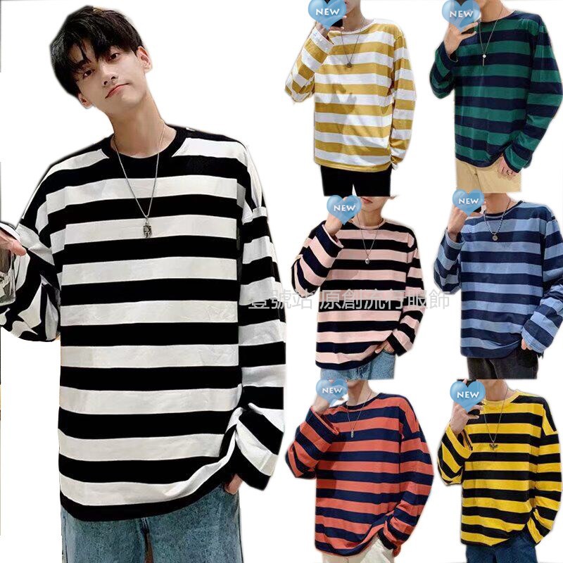 潮流條紋長袖T恤 男生長袖T恤 男女可穿 寬鬆長T 學生T恤 橫條T恤 情侶裝(CBT01)【壹號站】