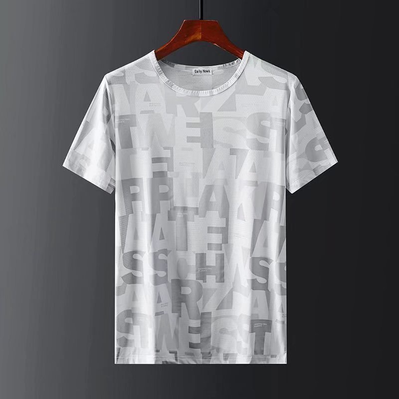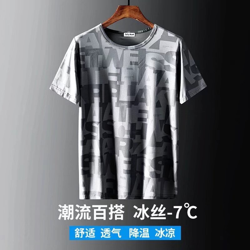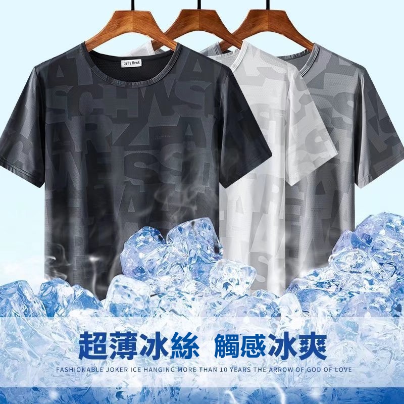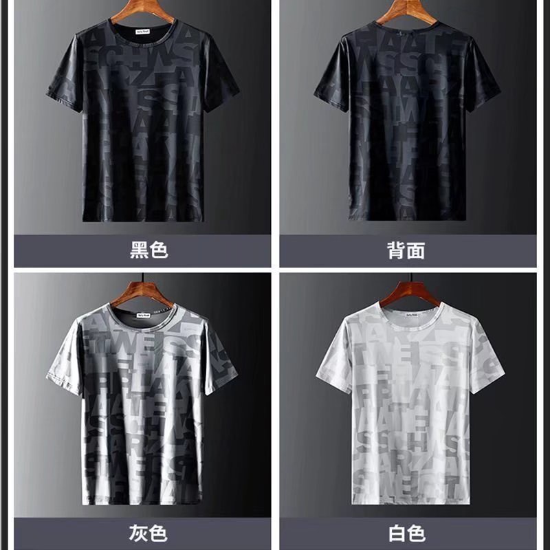 男生冰絲暗花短袖t恤夏季韓版學生帥氣短袖寬鬆上衣港風男士圓領潮流t恤印花t恤(PG1101)【壹號站】