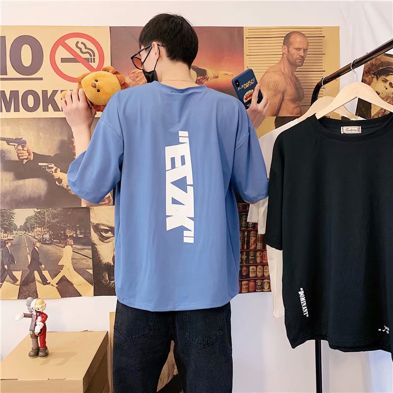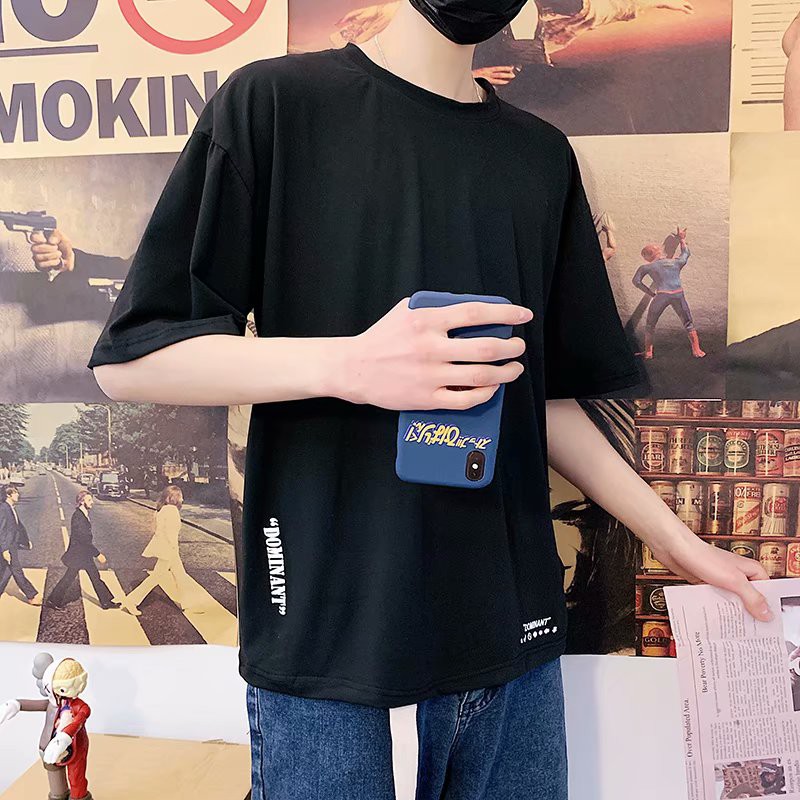 男生短袖T恤 韓版休閒黑白純色印花T 寬鬆短袖 潮流百搭日系嘻哈素面情侶大尺碼T恤男(XLKK4)【壹號站】