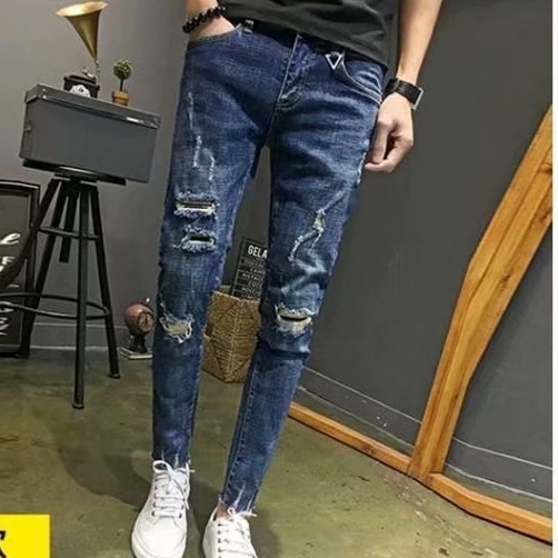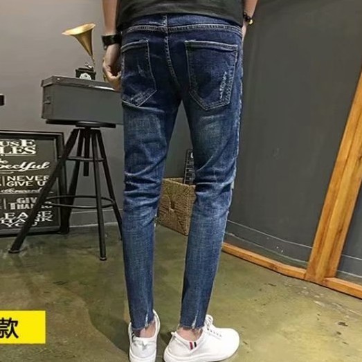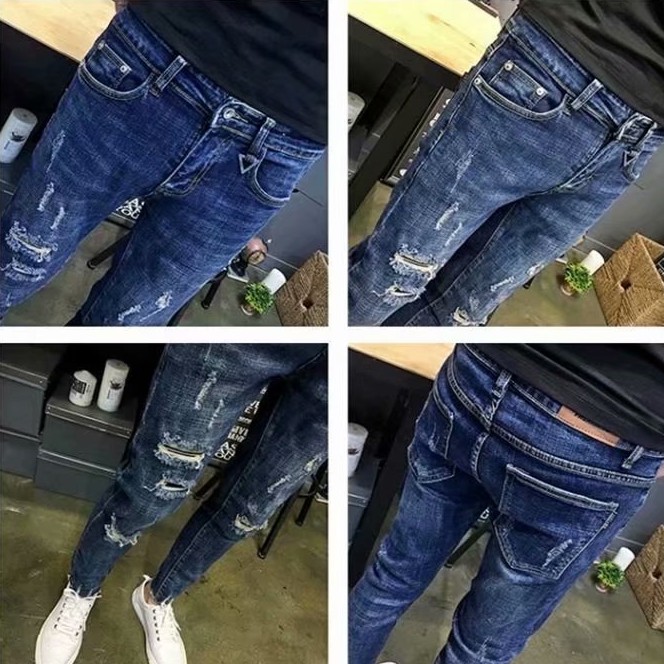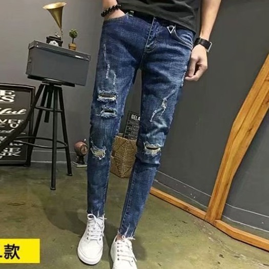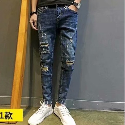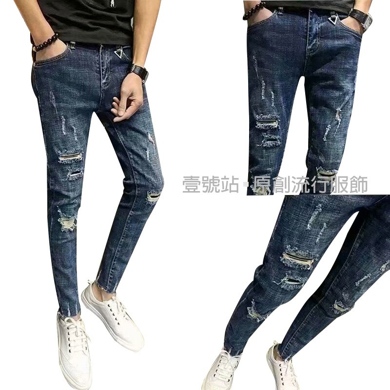 高品質 彈力丹寧新款牛仔破褲 刷破牛仔褲 修身韓版 牛仔長褲 百搭 長褲 丹寧 男生 9分褲(CK5112)【壹號站】