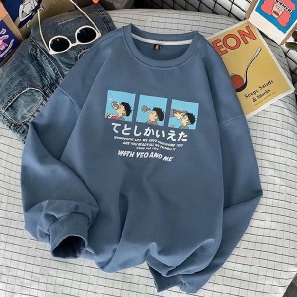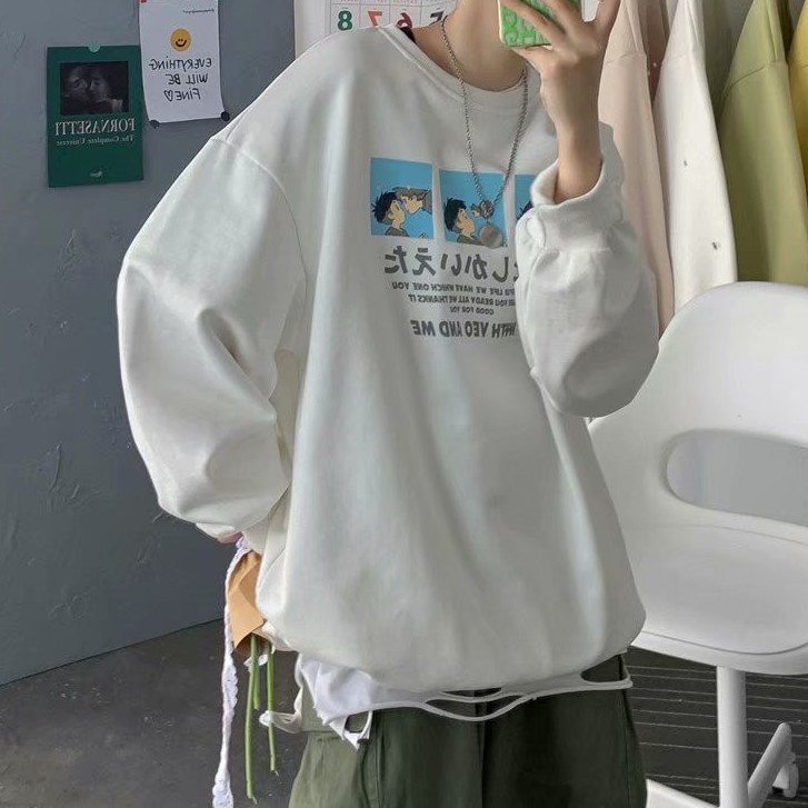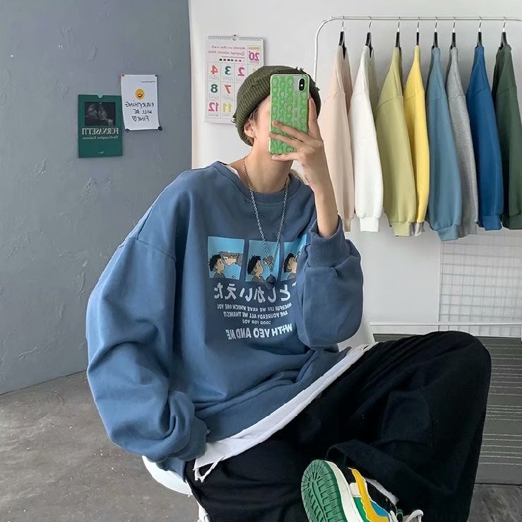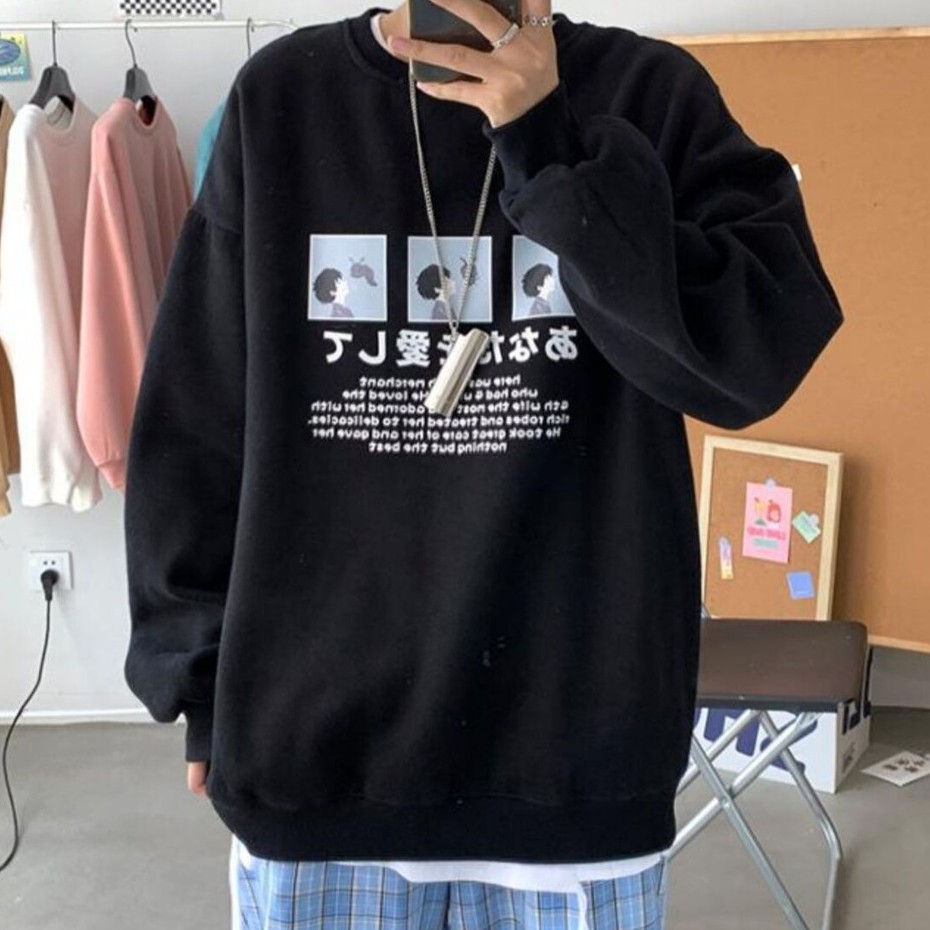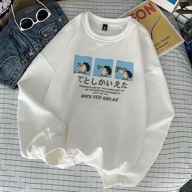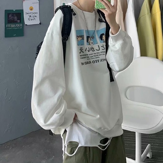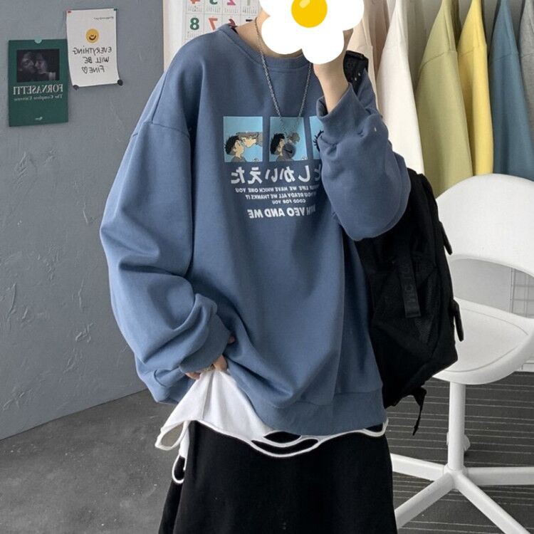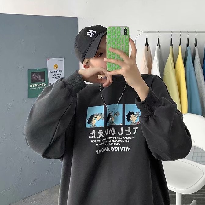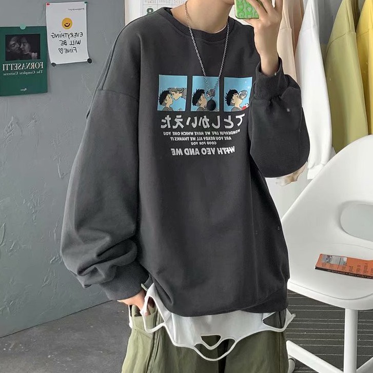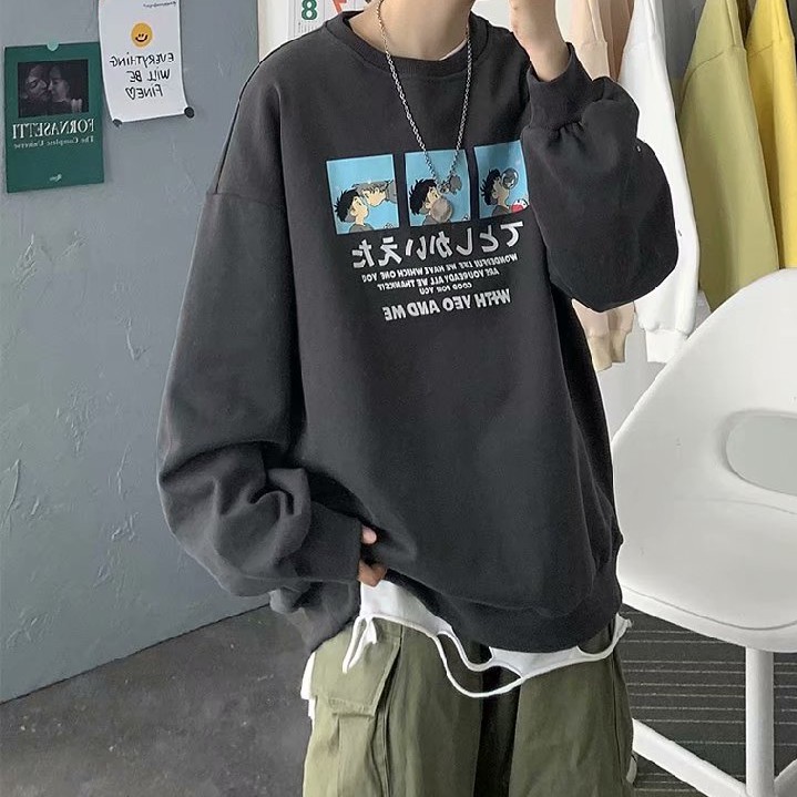 韓版新品日系卡通印花圓領刷毛T恤 M-5XL 情侶潮流寬鬆套頭衛衣學生 大學T(GCY63)【壹號站】