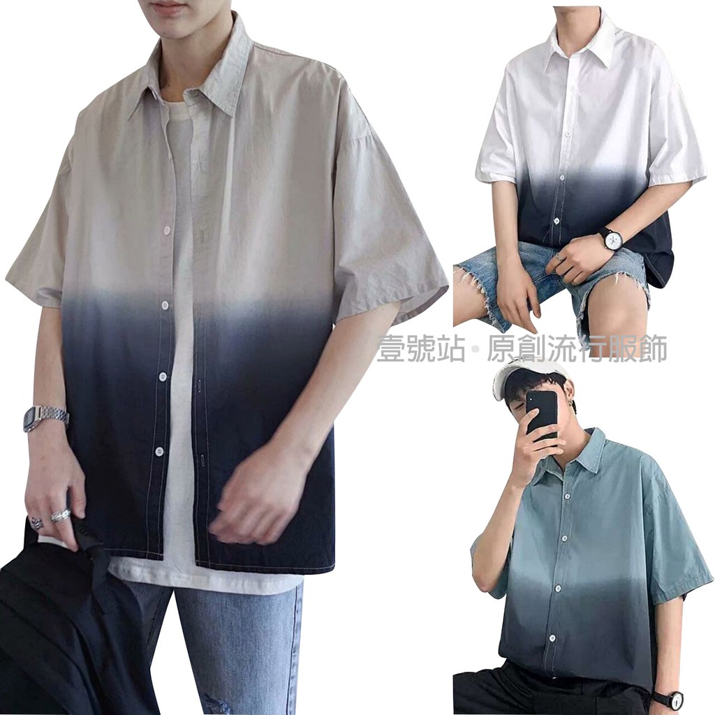 漸變色襯衫男 短袖襯衫 工裝襯衫 素面襯衫 百搭襯衫 軍裝襯衣 男生衣著(TX752)【壹號站】