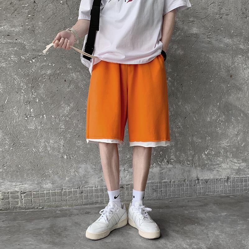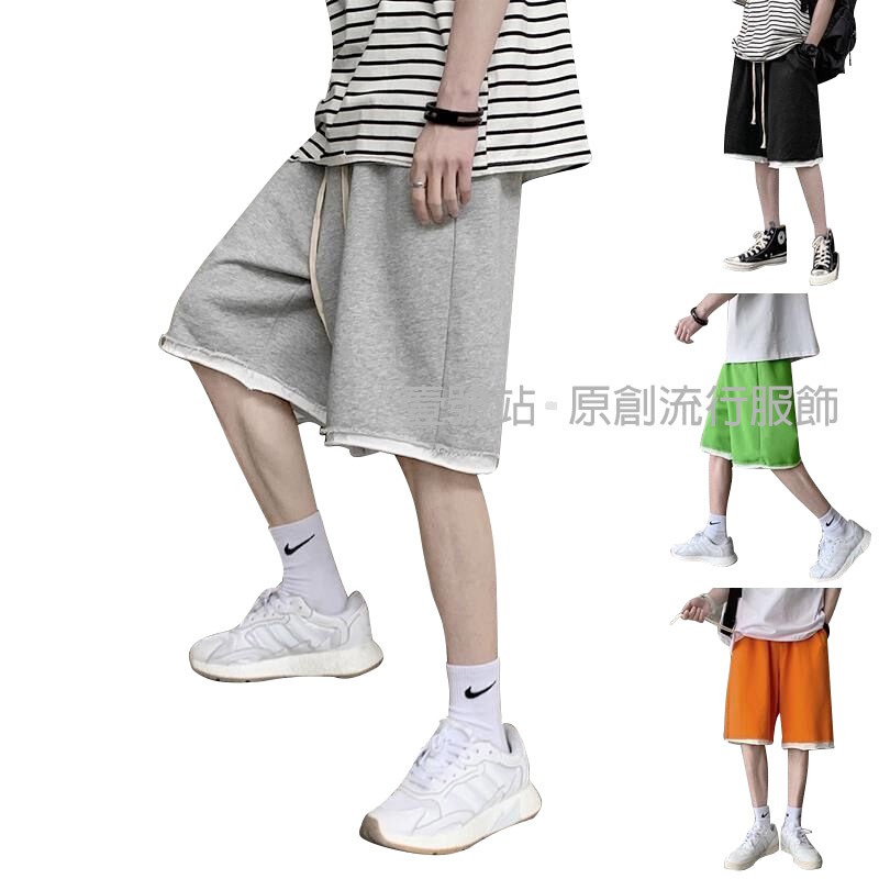 棉短褲 假兩件短褲男 衛衣休閒褲男 情侶鬆緊褲 沙灘褲 寬鬆短褲 個性滑板褲男 五分褲 休閒短褲(CH11)【壹號站】