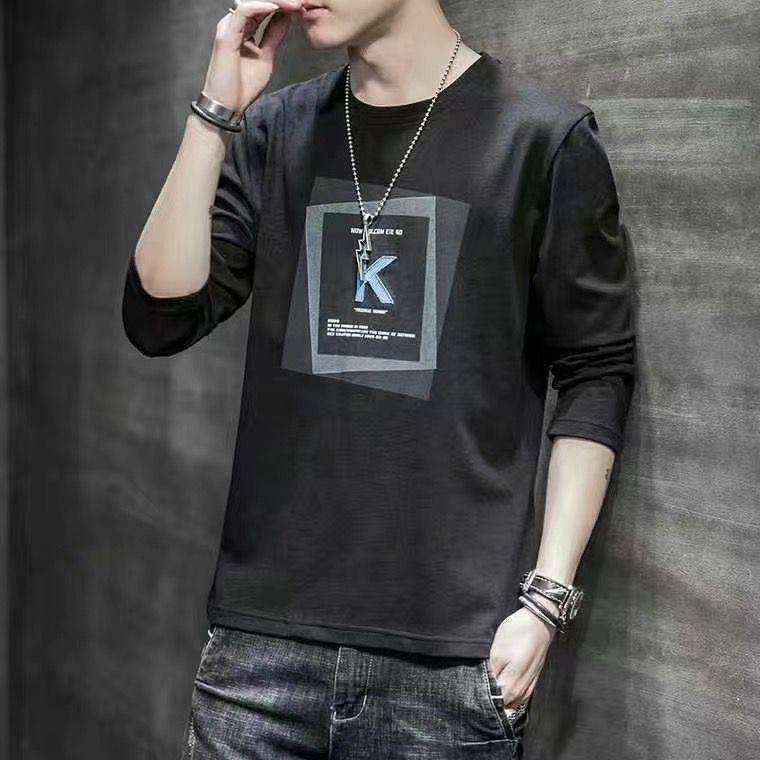潮牌男生必備長袖 韓版長袖T恤 港風長袖T恤 原宿風長袖T恤男 印花T恤 大學T 男女衣著(C方塊K)【壹號站】
