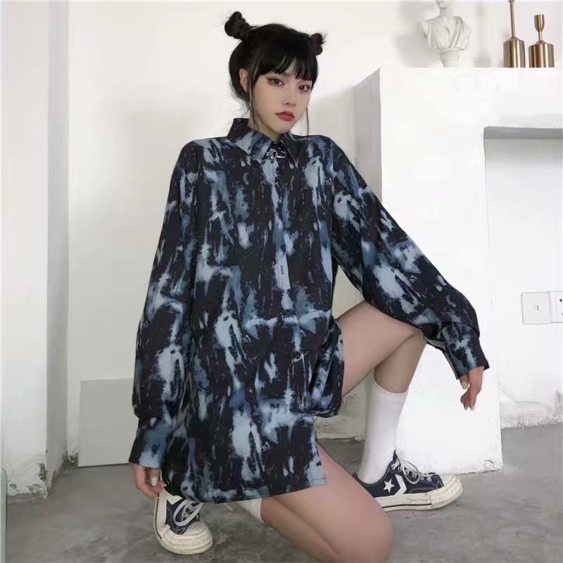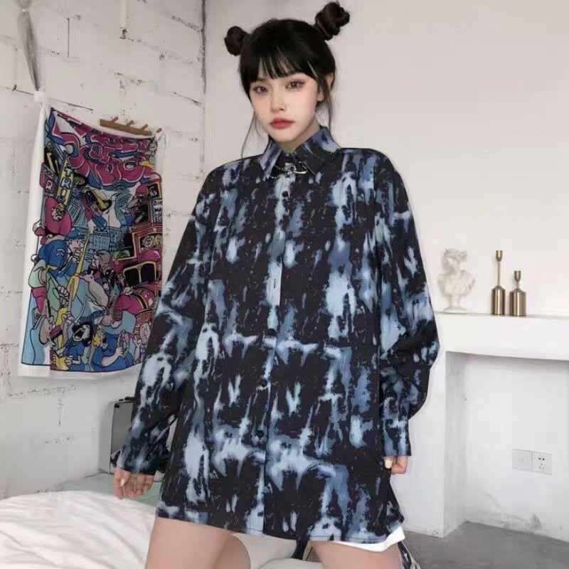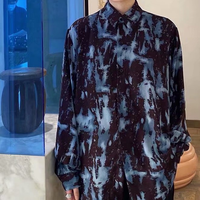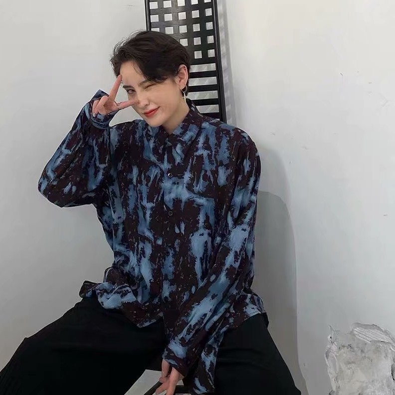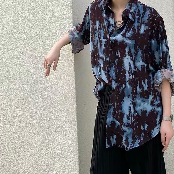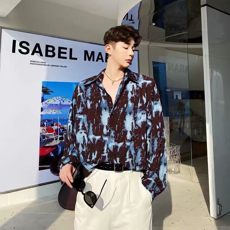 韓版懷舊紮染海南風寬鬆襯衫男士韓版潮流絲滑垂感英倫長袖襯衣男(RSJ631)【壹號站】