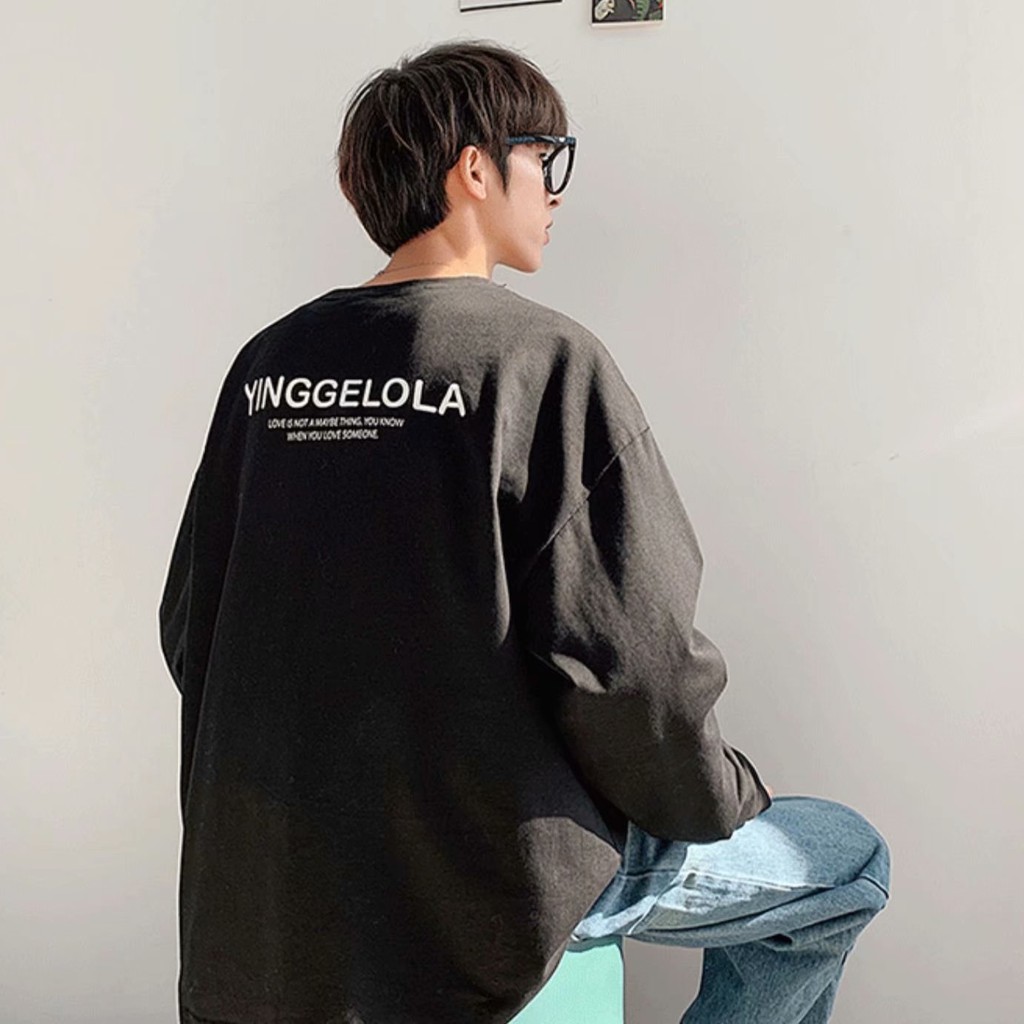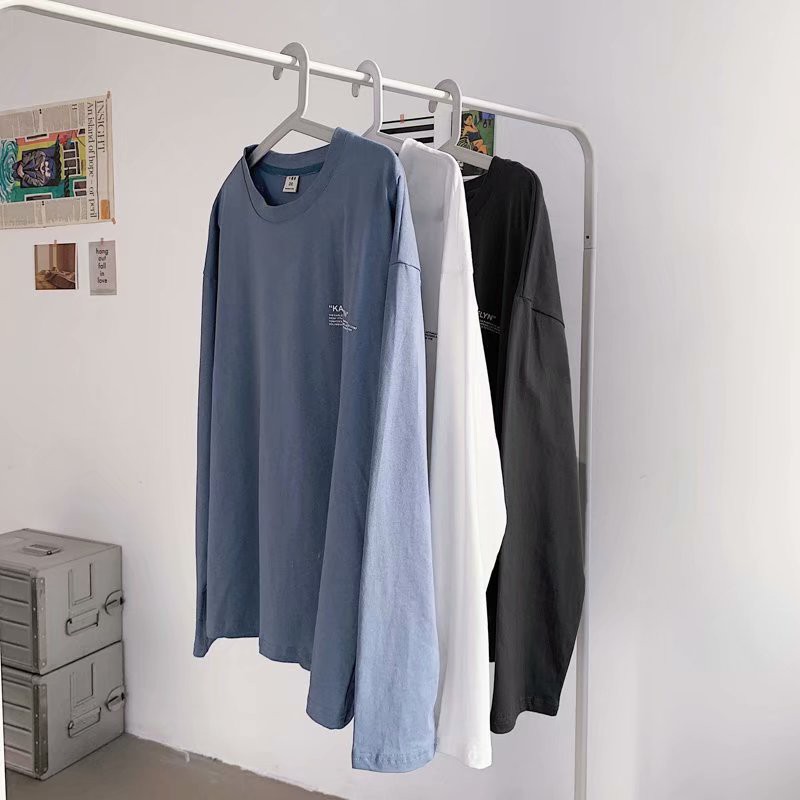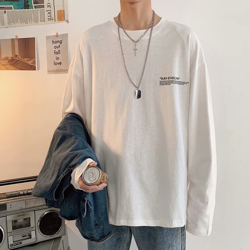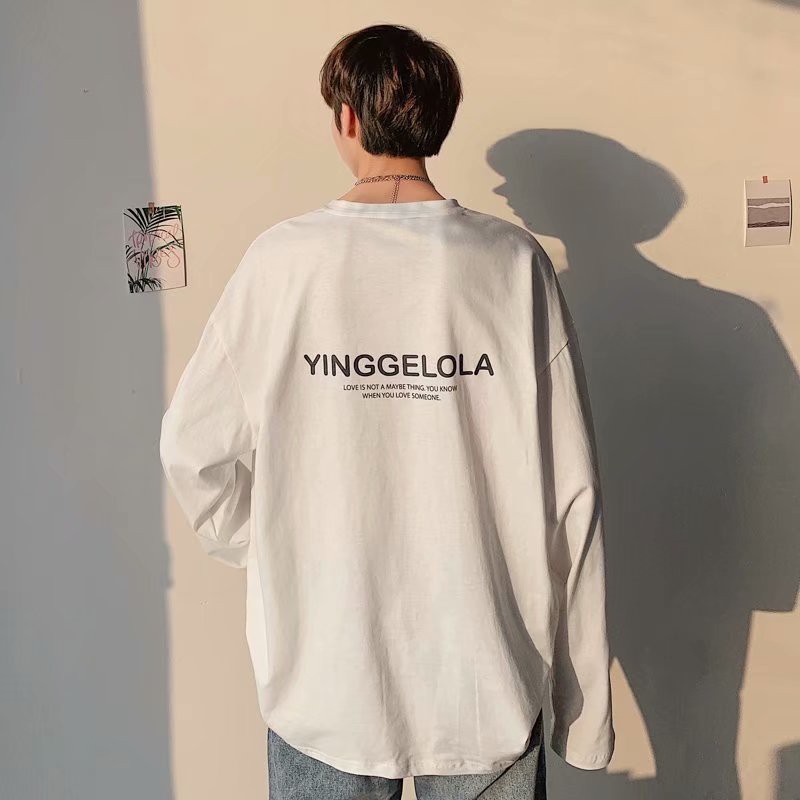 港風簡約印花衣裝男潮牌胖哥加肥大碼長袖上衣服寬鬆休閑百搭T恤(SRT204)【壹號站】