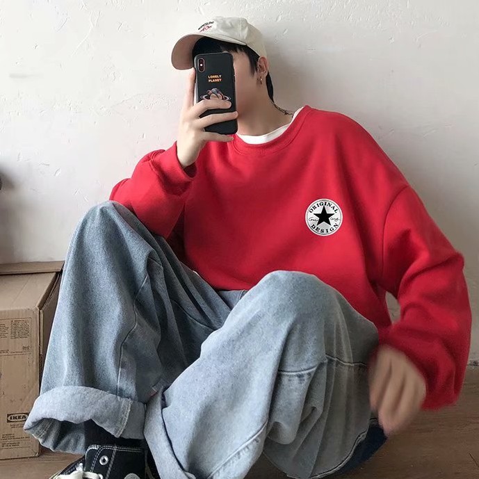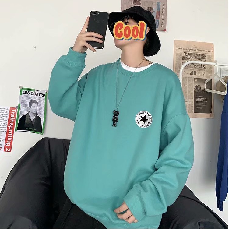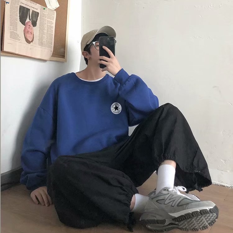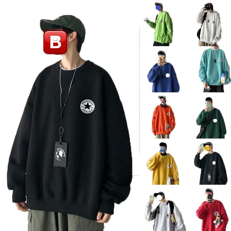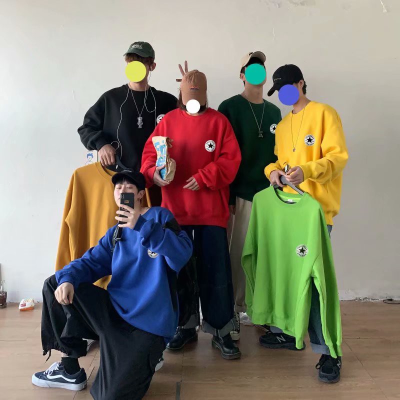 【十色】衛衣男 潮ins寬鬆 學生圓領 上衣 韓版 潮流 秋季 百搭港風T恤 大學T 帽T (YQW04)【壹號站】