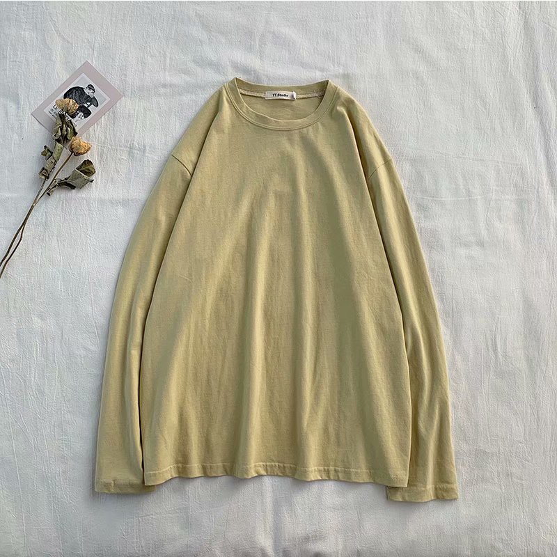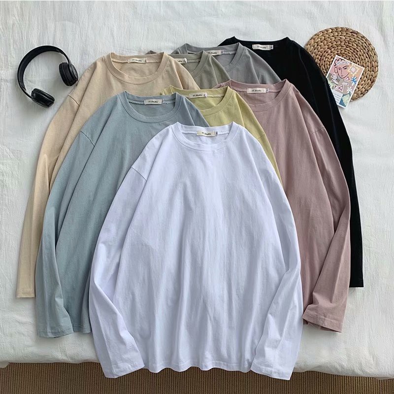 潮流純色落肩果凍色T恤 (8色)長袖T恤 寬松青少年ins長袖素T百搭衣服 情侣裝 打底衫T恤(QYT076)【壹號站】