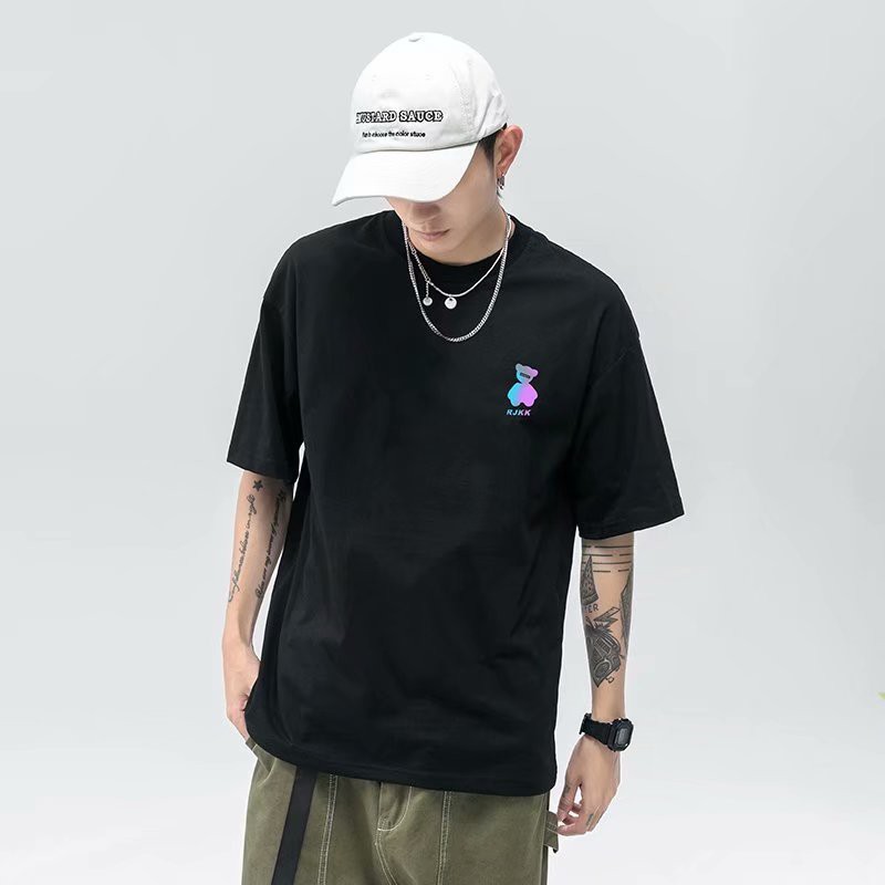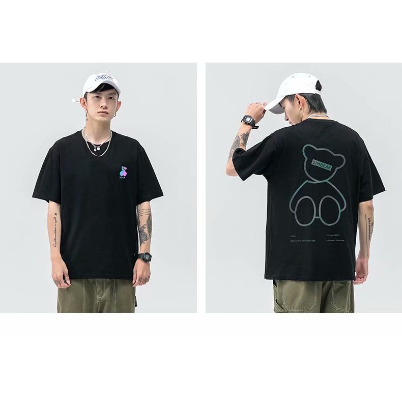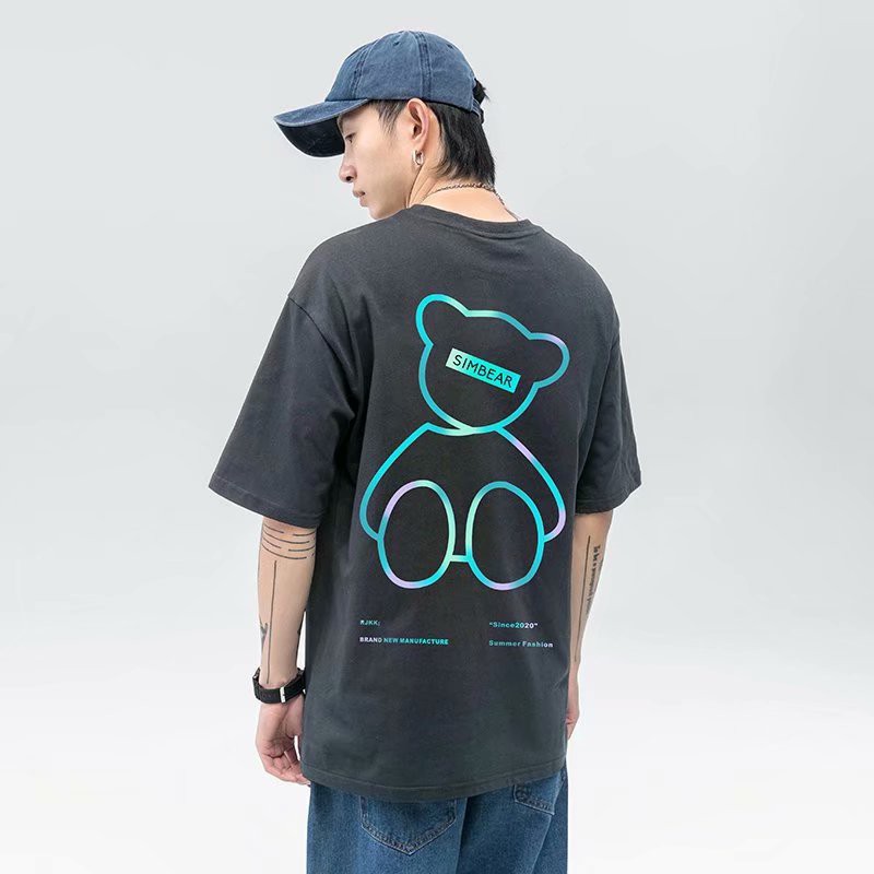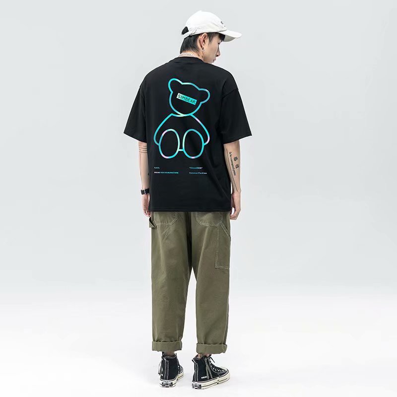 韓版新款反光小熊情侶裝炸街流行短袖T恤男潮版港風中青年寬鬆版 大學T 印花T 短T(YST63)【壹號站】