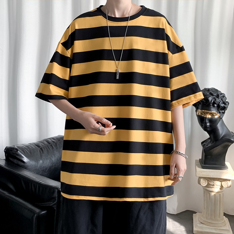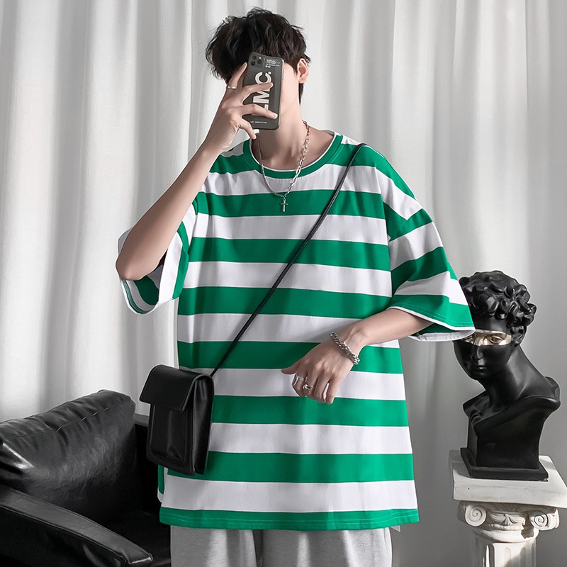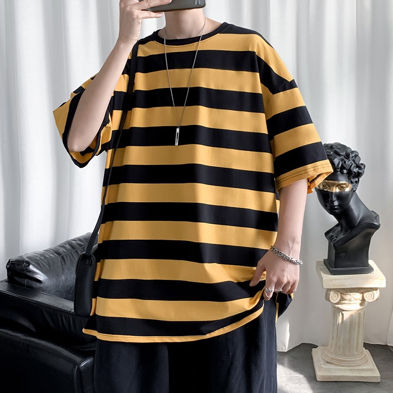 橫條上衣 橫條 寬鬆 T恤 五分袖上衣 短T 短袖 男女 情侶 男生衣著(JYT02)【壹號站】