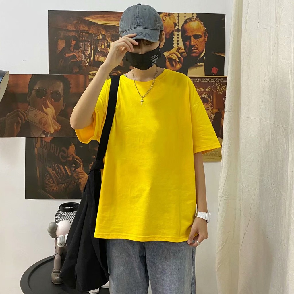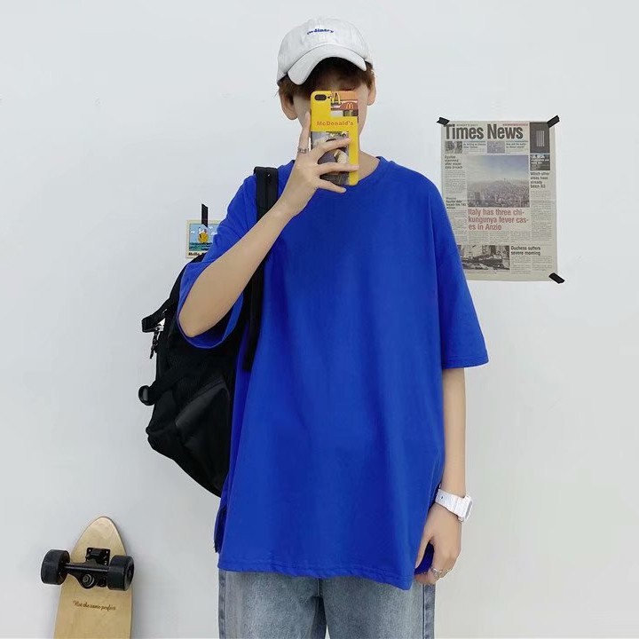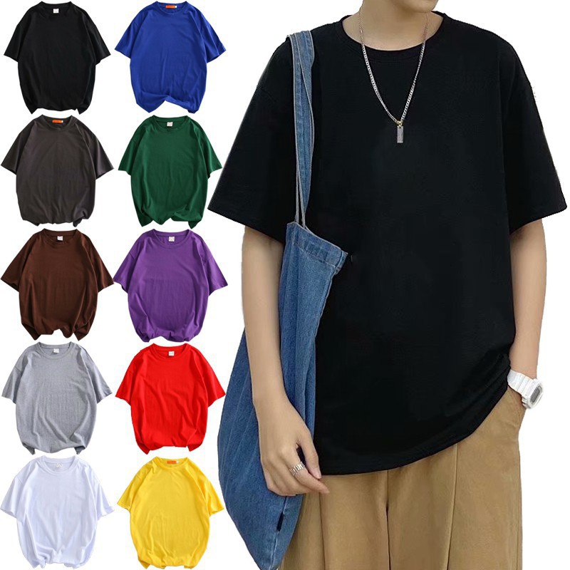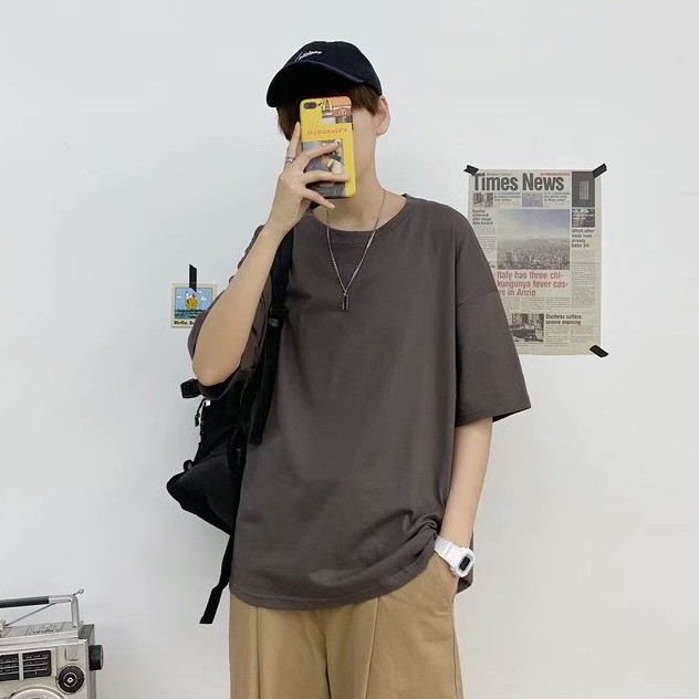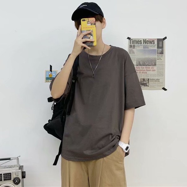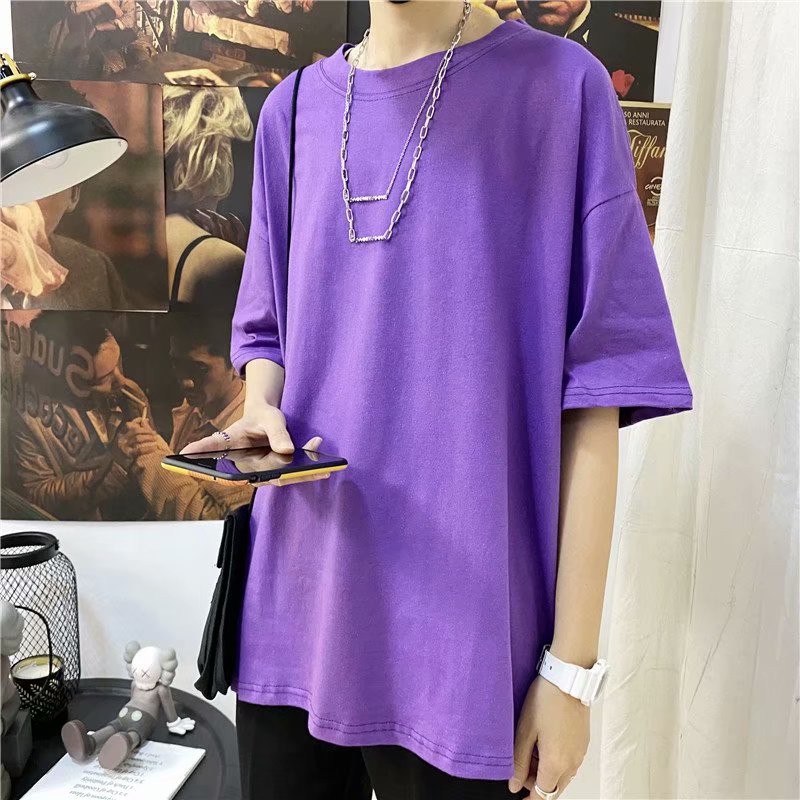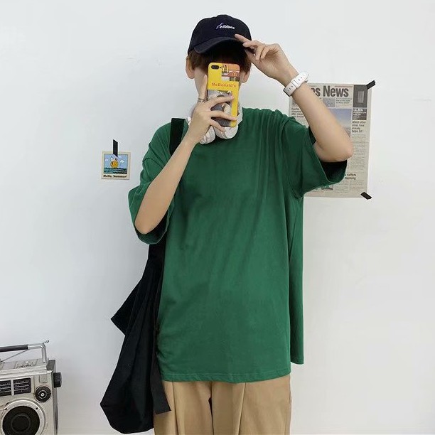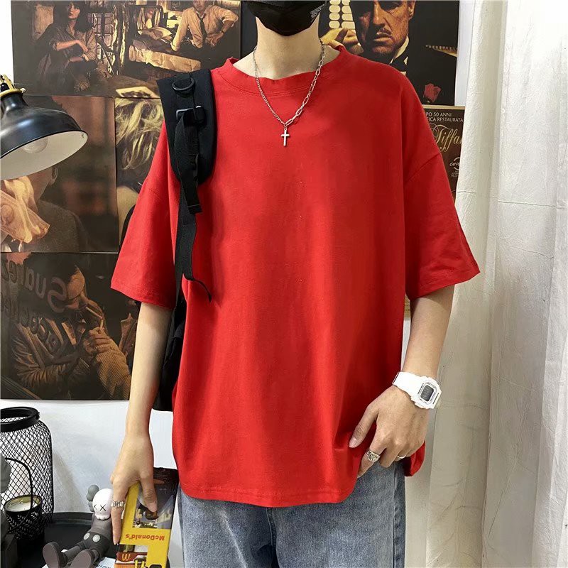 十色潮流純色落肩T恤 大尺碼五分袖T恤 寬松青少年ins五分袖素T百搭衣服 情侣裝 打底衫T恤(HX1001)【壹號站】
