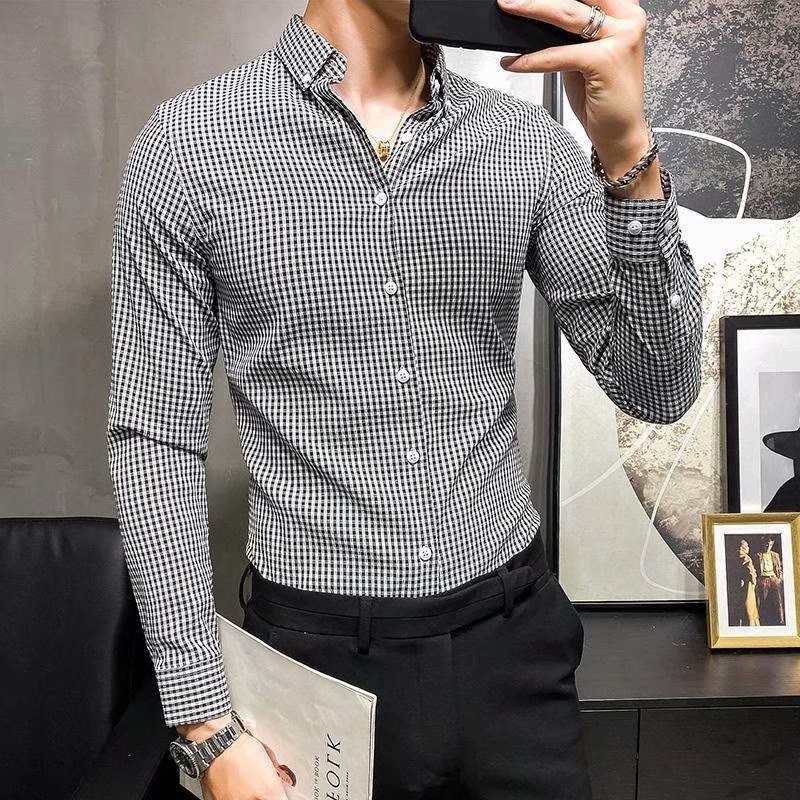 新款 純棉格子襯衫男 長袖 韓版 休閒 修身 潮流 青年帥氣 個性男士襯衣(VY780)【壹號站】