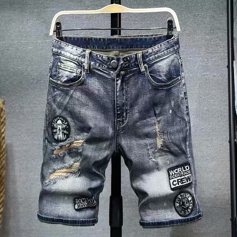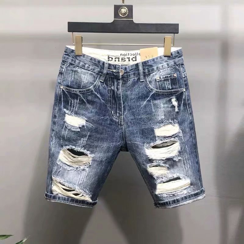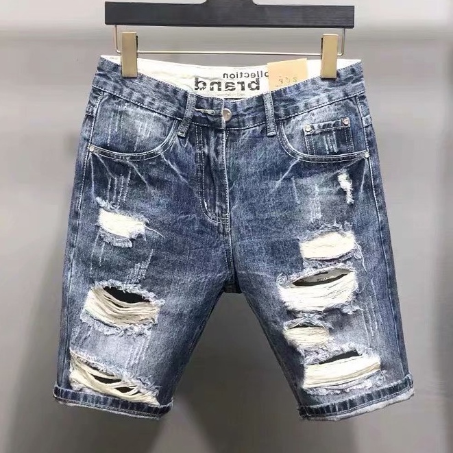 重磅刷破牛仔短褲 街頭風格 新款破壞丹寧 男牛仔破洞短褲 五分褲 深色短褲 破褲(CJJ888)【壹號站】