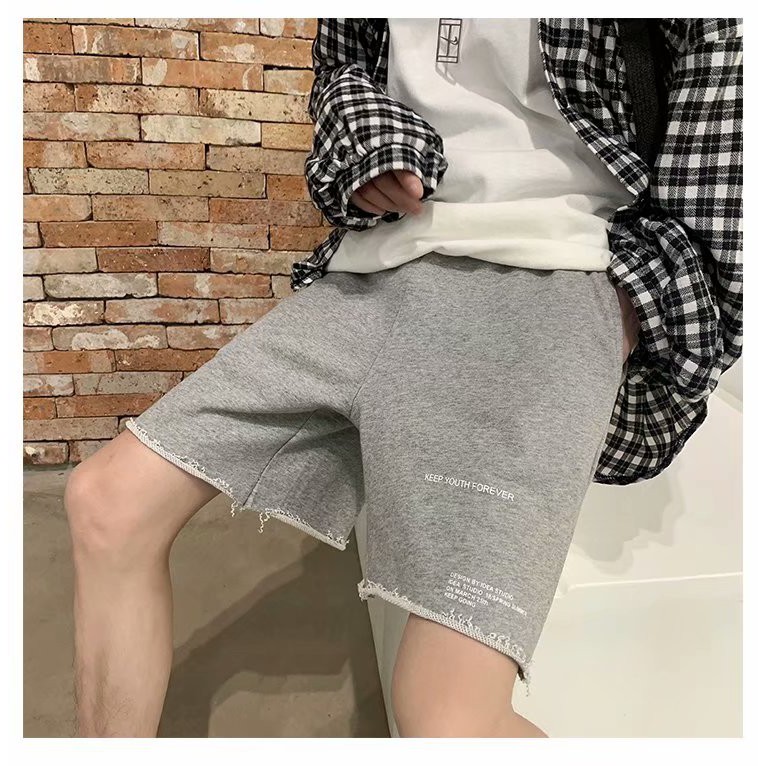 素色印花短褲男 衛衣休閒褲男 情侶鬆緊褲 沙灘褲 寬鬆短褲 個性滑板褲男 五分褲 休閒短褲(CBT617)【壹號站】