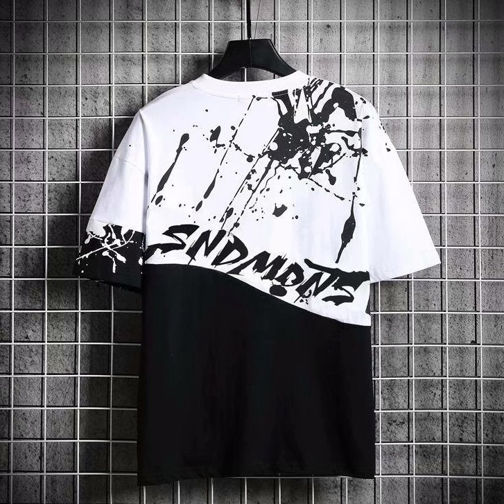 韓版男生短袖T恤男潮牌ins潑墨上衣寬鬆短袖潮流大尺碼半袖青年百搭5五分袖歐美T恤(LPK25)【壹號站】