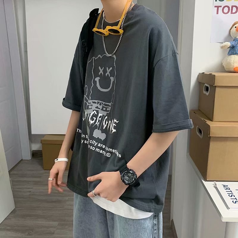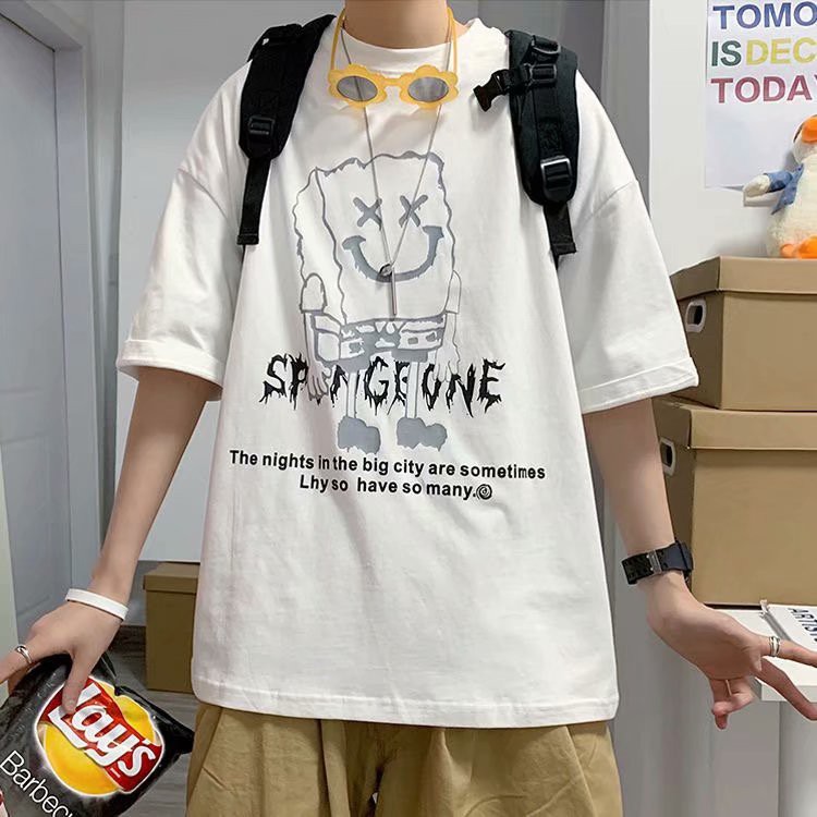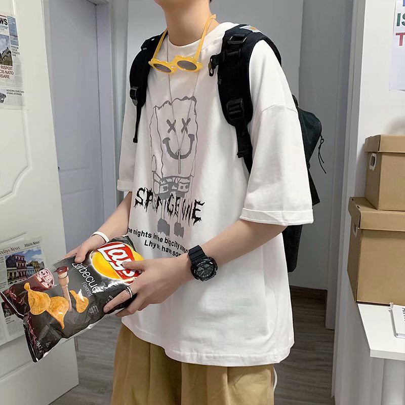 韓版夏季衣服 素t 潮流 日系 短袖T恤 男生 寬鬆 嘻哈 大尺碼 情侶 五分袖 大學T 短T(SKS319)【壹號站】