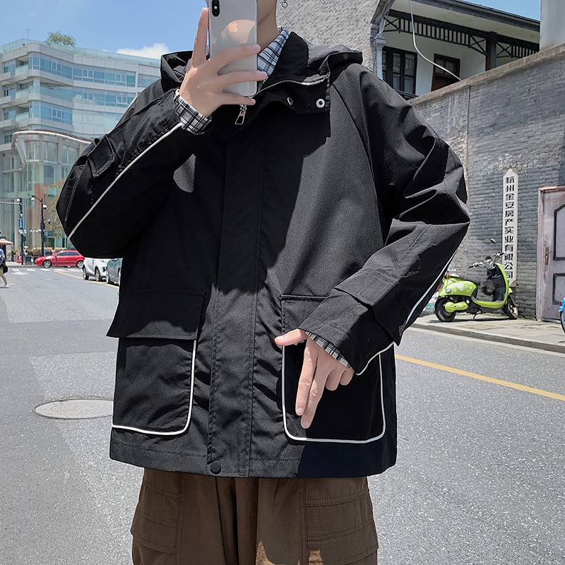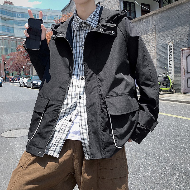 工裝夾克外套 港風寬鬆大口袋夾克男 日系原宿風學生立領百搭防風外套 工作外套(JYY11)【壹號站】
