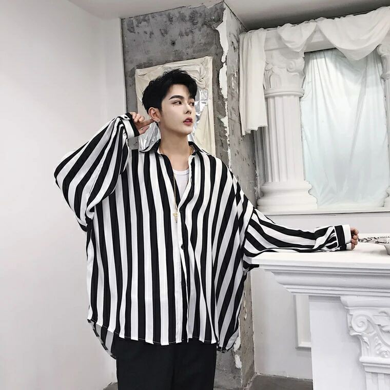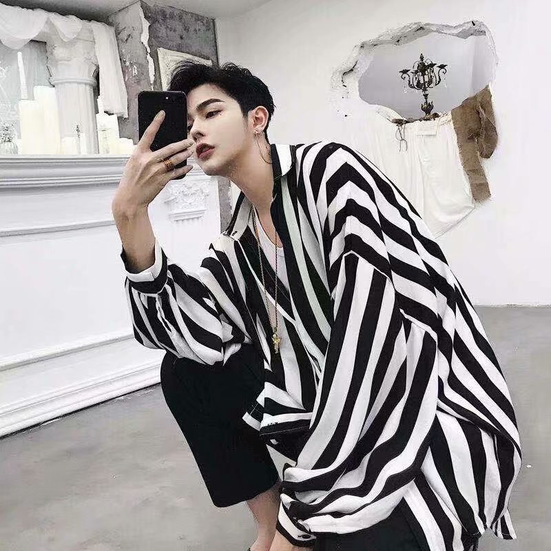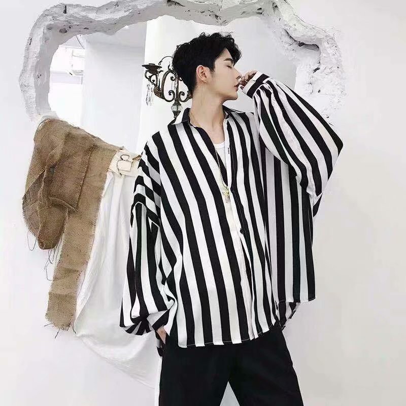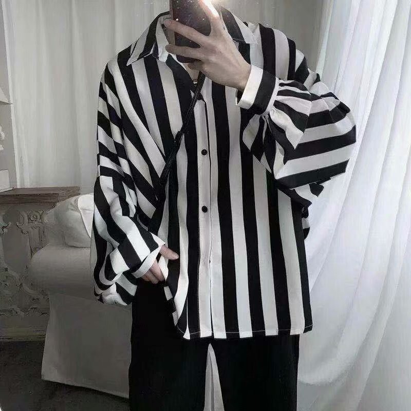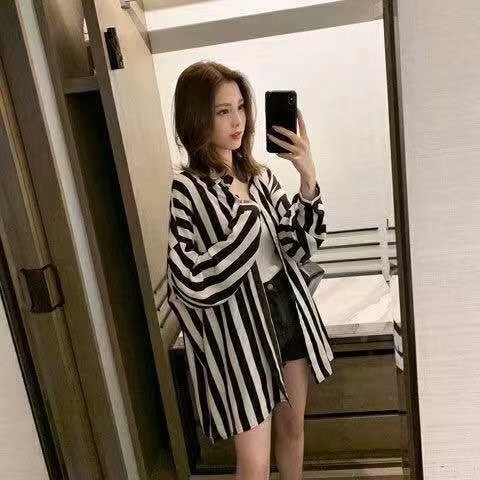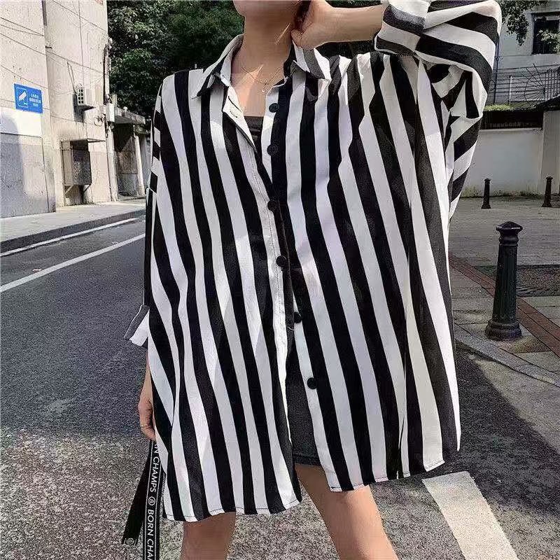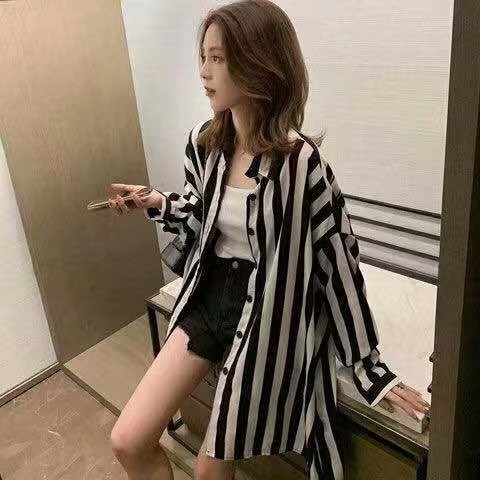 實拍韓版寬鬆條紋襯衫小清新百搭寬鬆原宿風學生寬鬆長款簡約個性長袖條紋襯衫(RSJ348)【壹號站】
