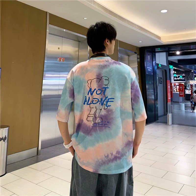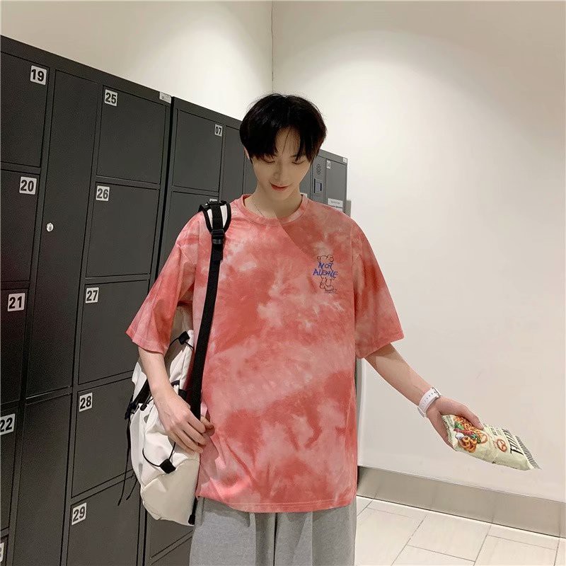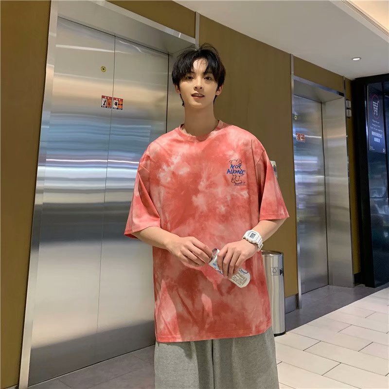 網紅紮染T恤 印花T恤 素t 潮流 五分袖 日系短袖T恤 男生 寬鬆 嘻哈 大尺碼 情侶 短T(BTZT02)【壹號站】