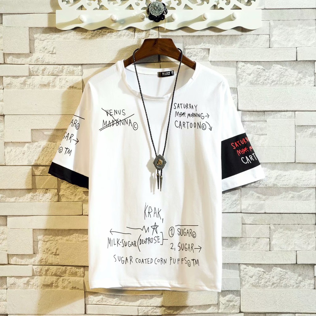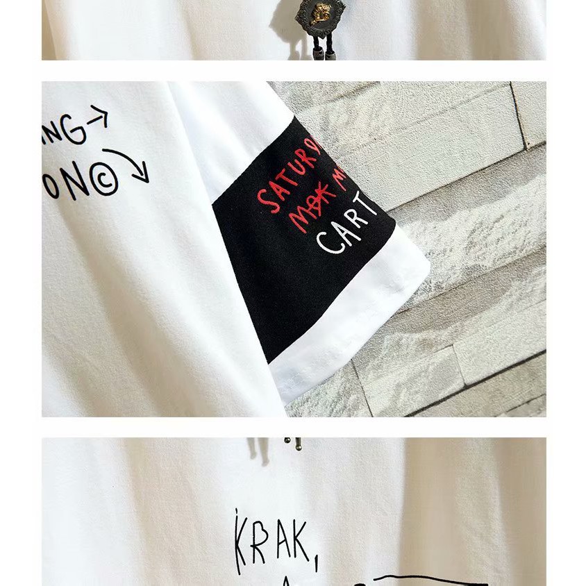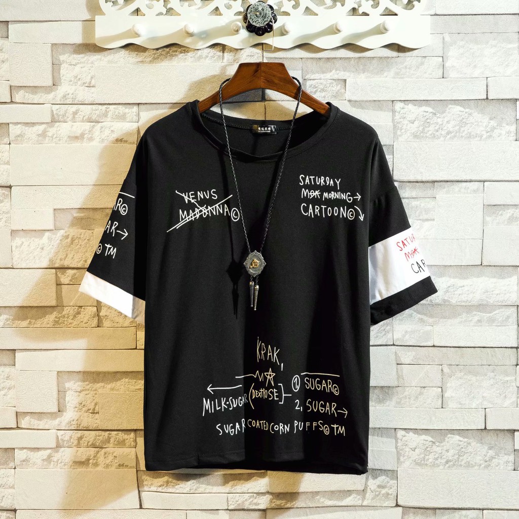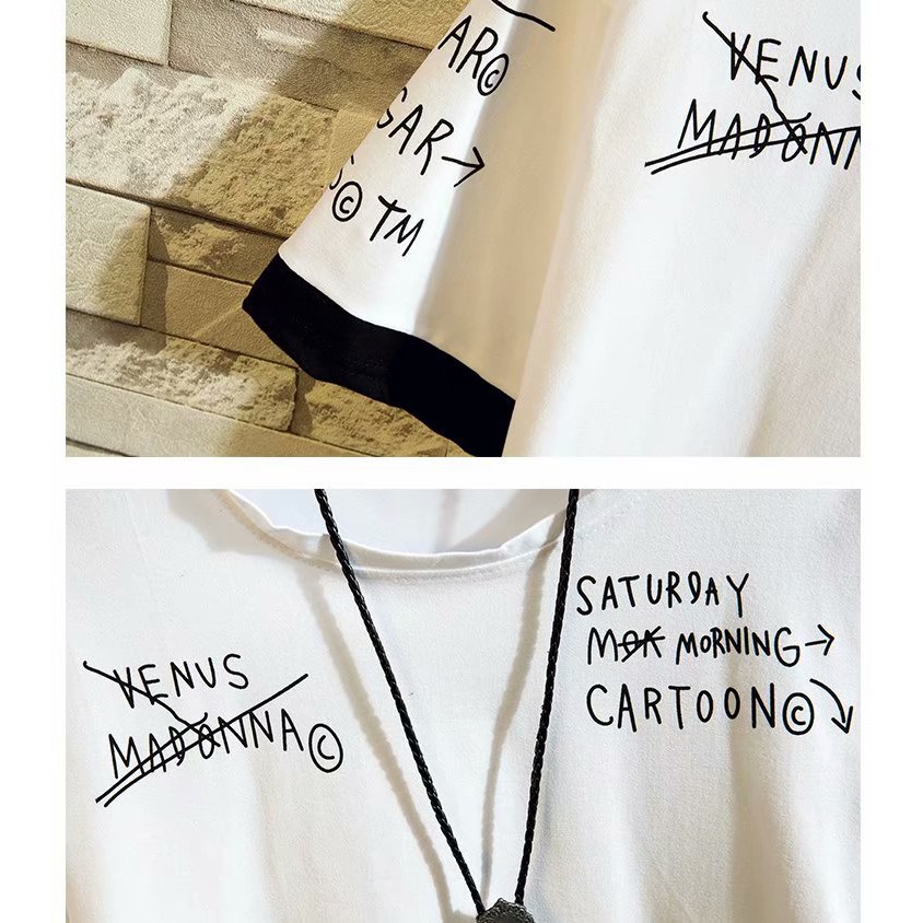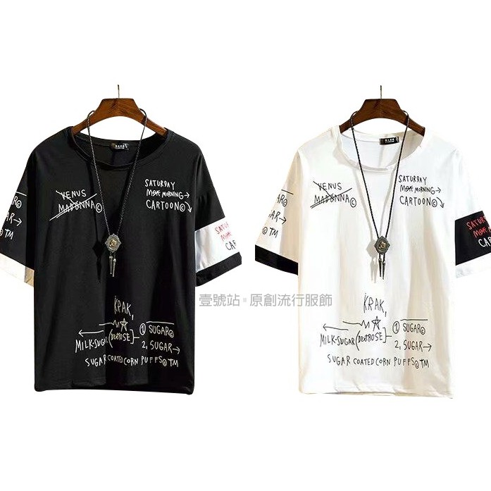 嘻哈街頭潮牌男生短袖T恤 日系字母寬鬆T恤男學生五分袖假兩件長版上衣 大尺碼五分袖T恤(LPK017)【壹號站】