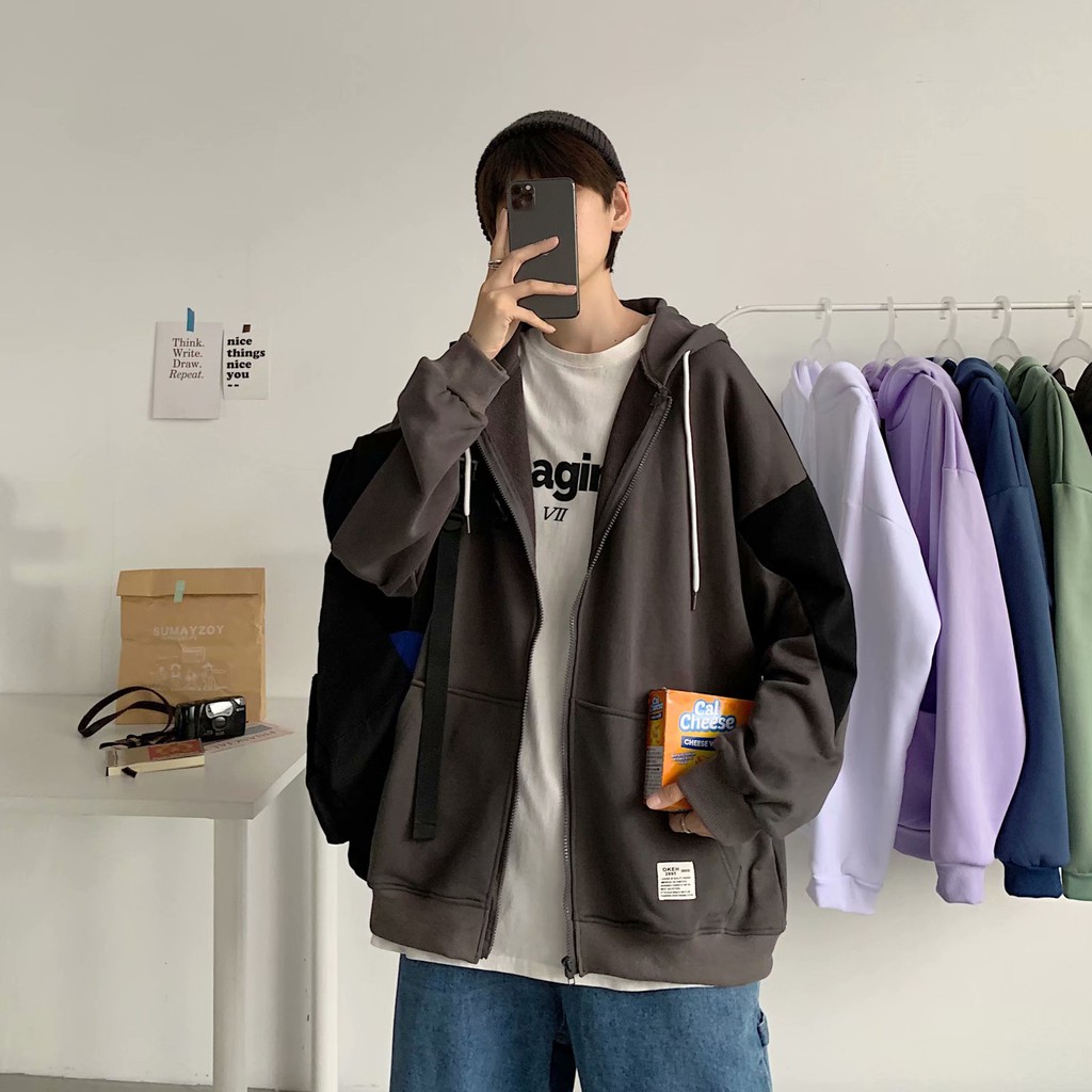 韓版新款港風連帽刷毛款男潮牌胖哥加肥加大碼開衫寬鬆休閑帽衫外套(XL819)【壹號站】