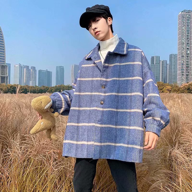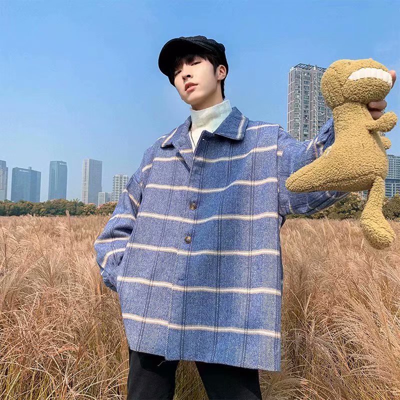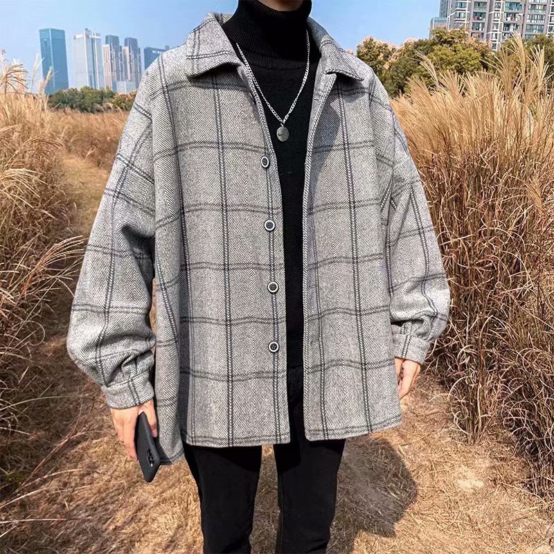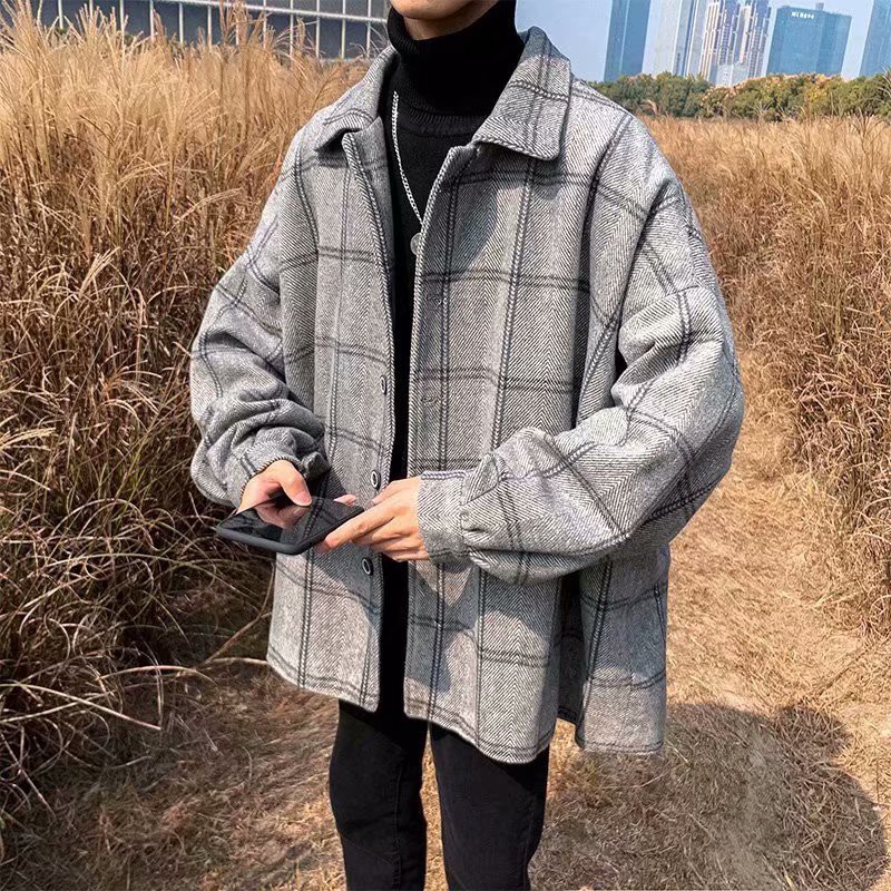 港風新款外套男韓版潮流呢子港風中長款格子風衣男裝毛呢大衣(JH208)【壹號站】