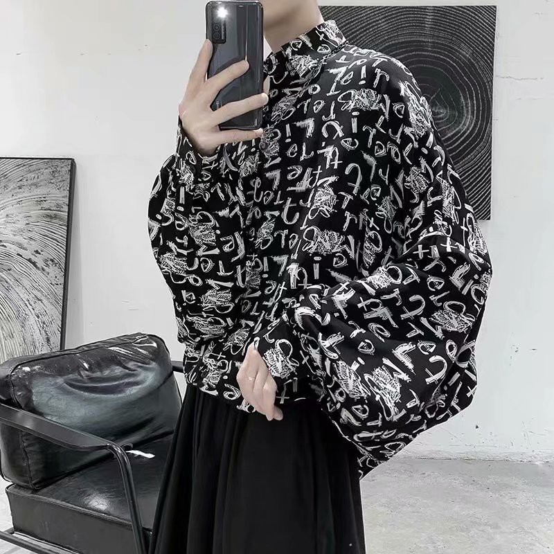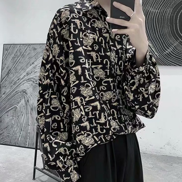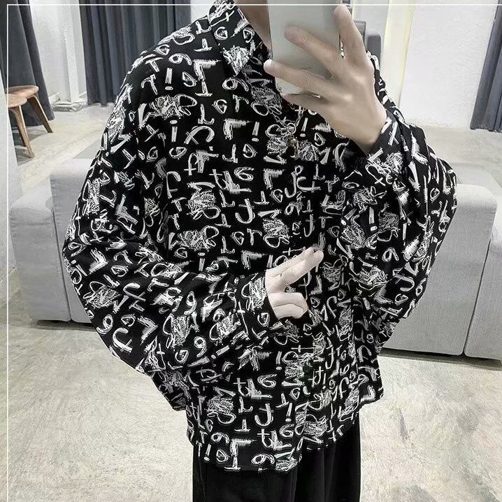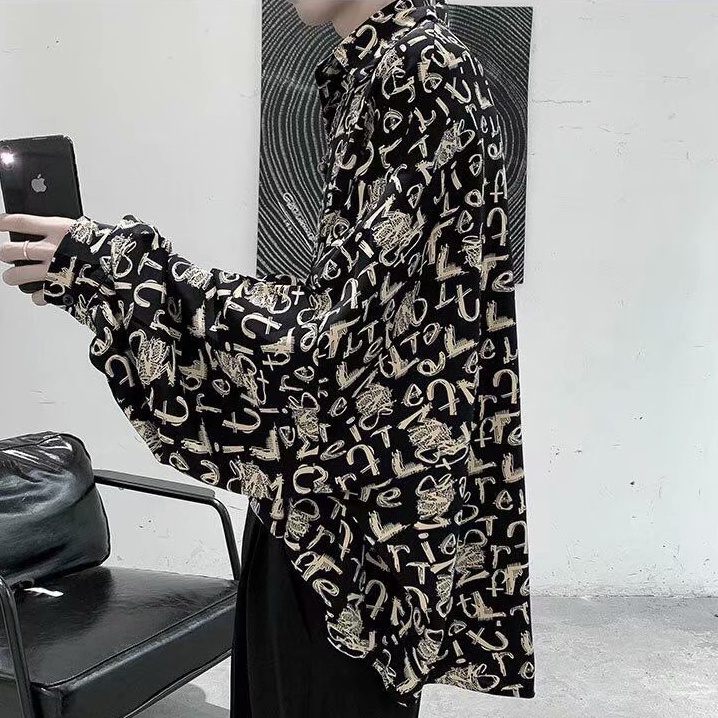 港風新款長袖襯衫 男韓版潮流高街帥氣原宿風黑暗系寬鬆風嘻哈蹦迪襯衣潮 襯衫 (RSJ637)【壹號站】