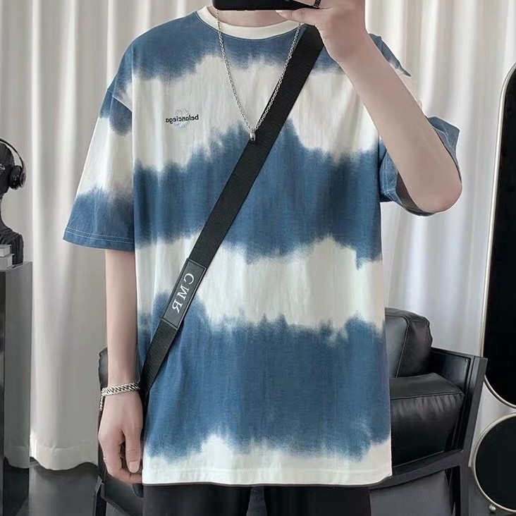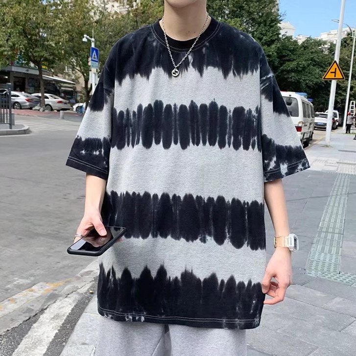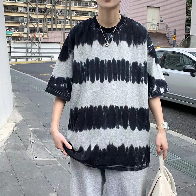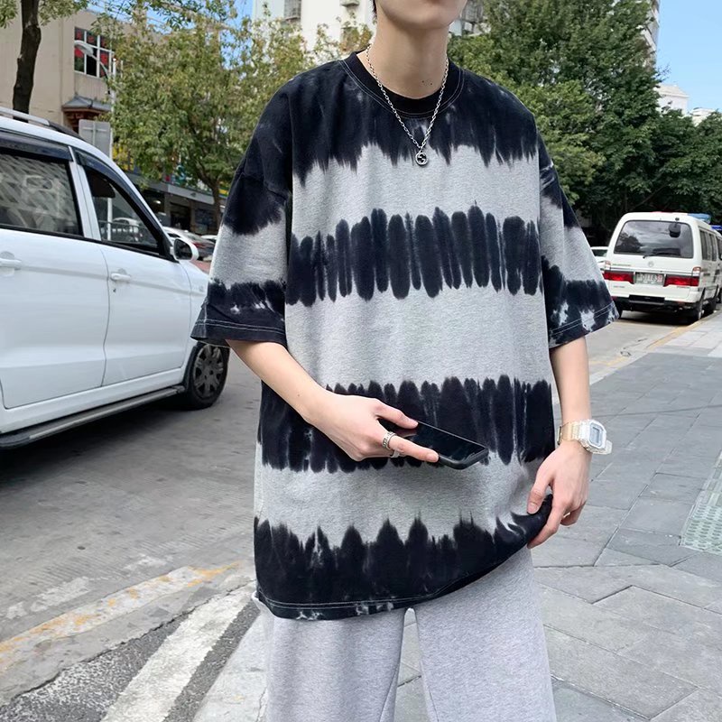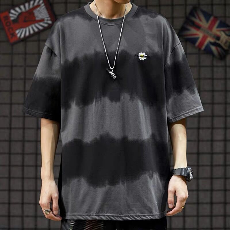 韓版扎染短袖t恤男 寬鬆百搭圓領 漸變色情侶T恤 百搭落肩休閒T恤短T 男生衣著(T901)【壹號站】