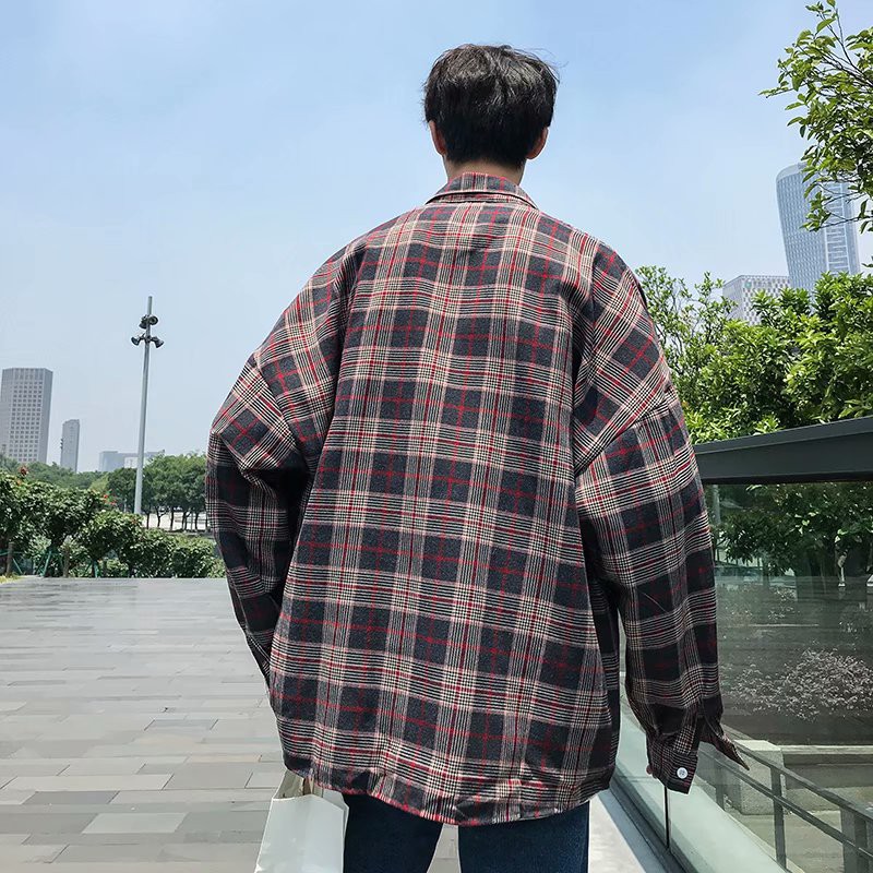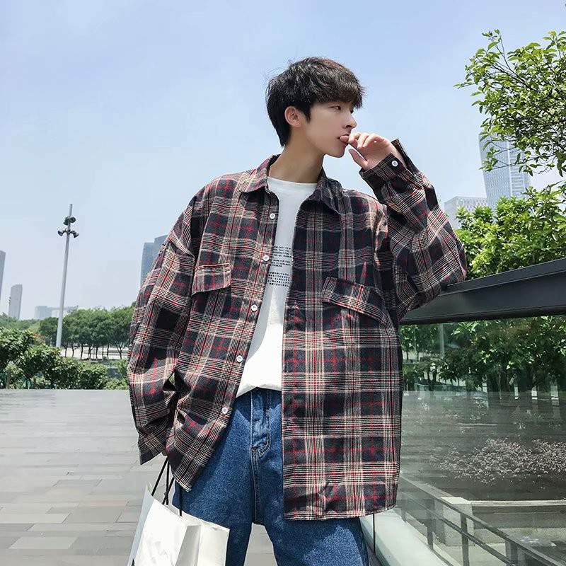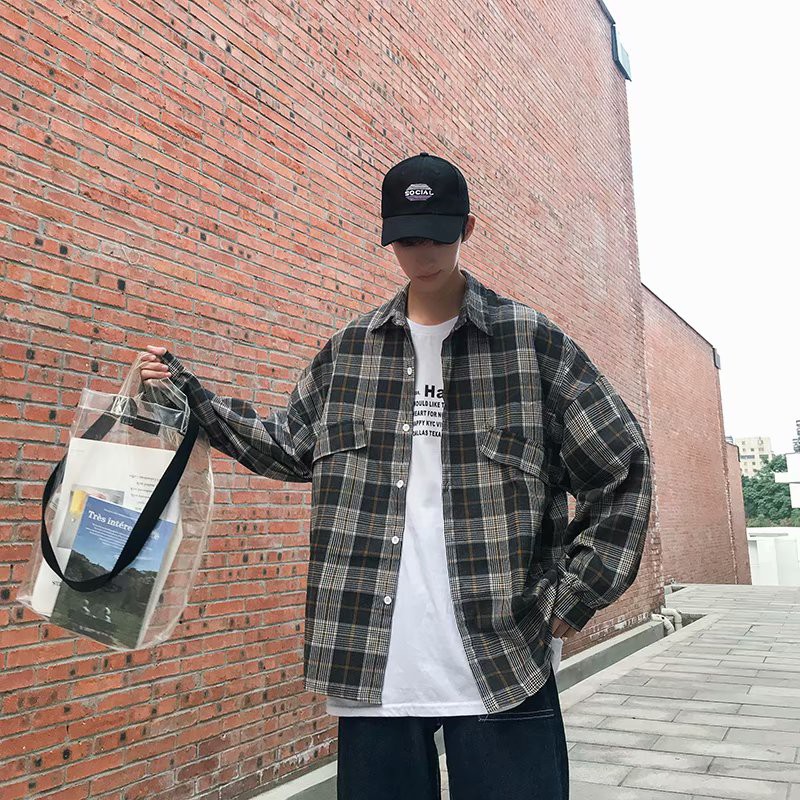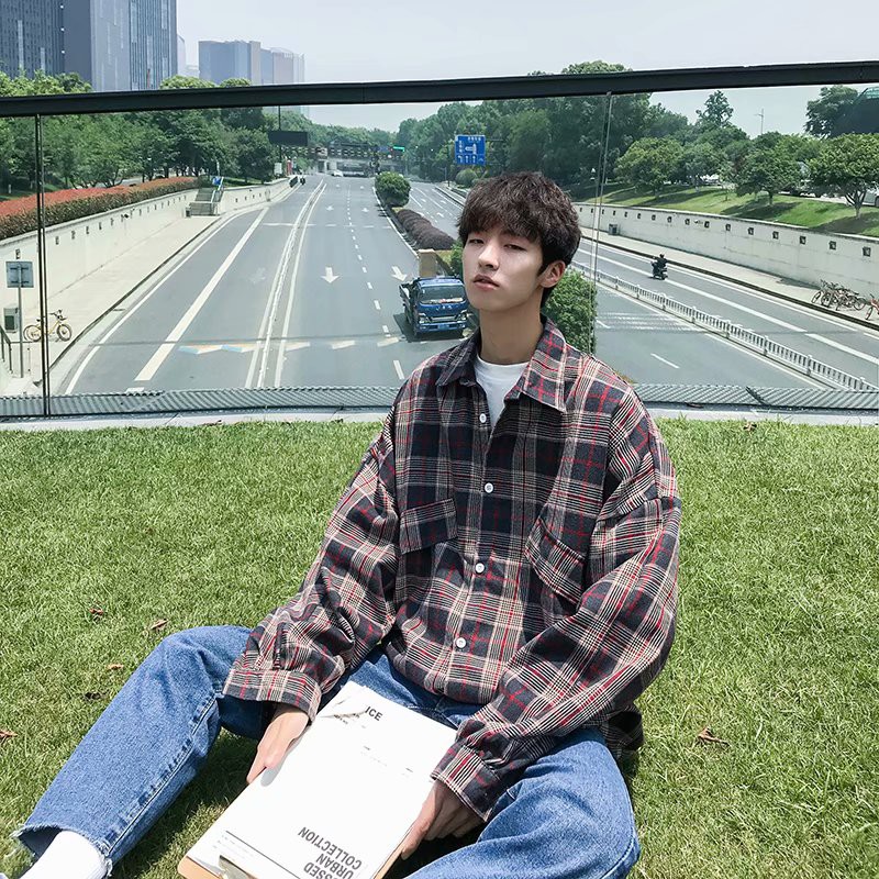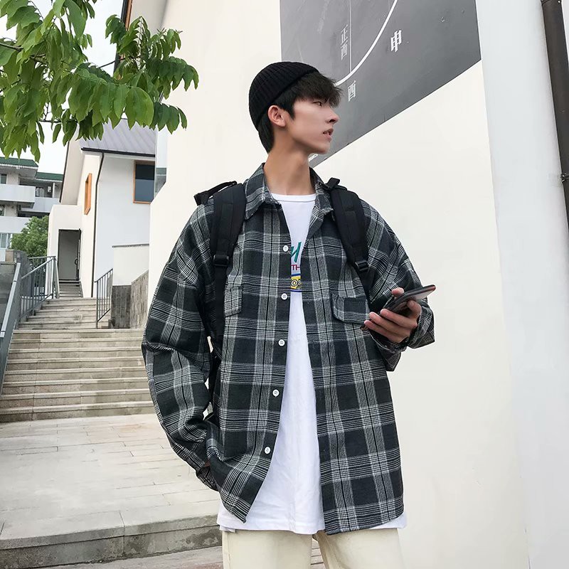 長袖工裝格子襯衫 韓版翻領襯衫 休閒學院風襯衣長袖衣服 正韓上衣 男生衣著(FW09)【壹號站】