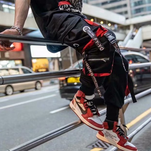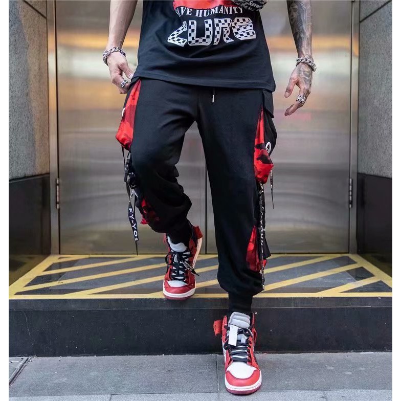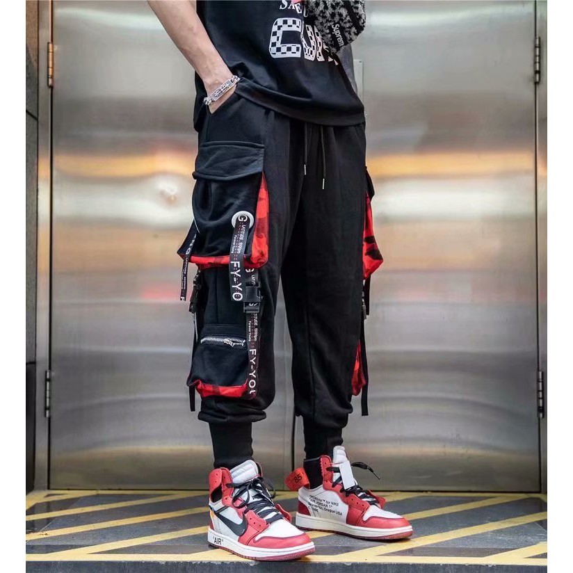 潮褲 飄帶工裝褲 側口袋長褲 寬鬆褲 工裝長褲 多口袋工裝褲 褲子男 軍裝褲 棉褲 (LXK40)【壹號站】