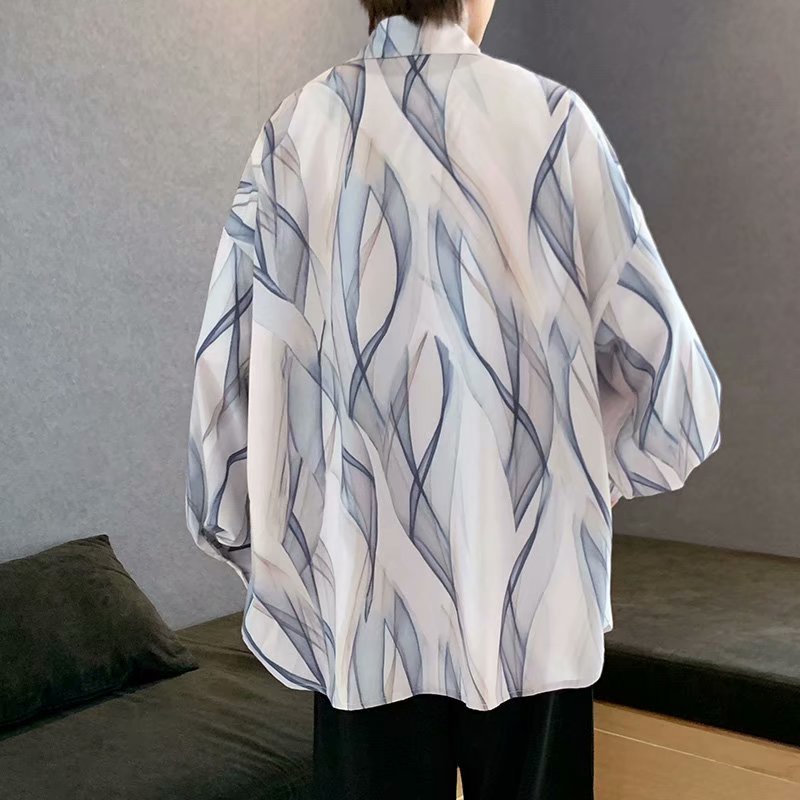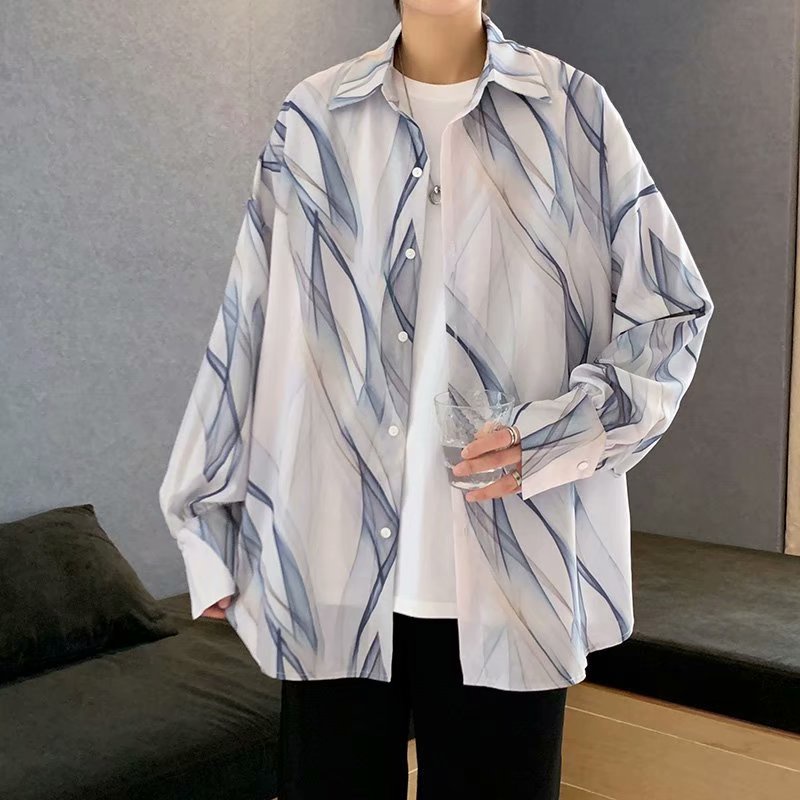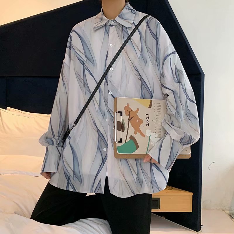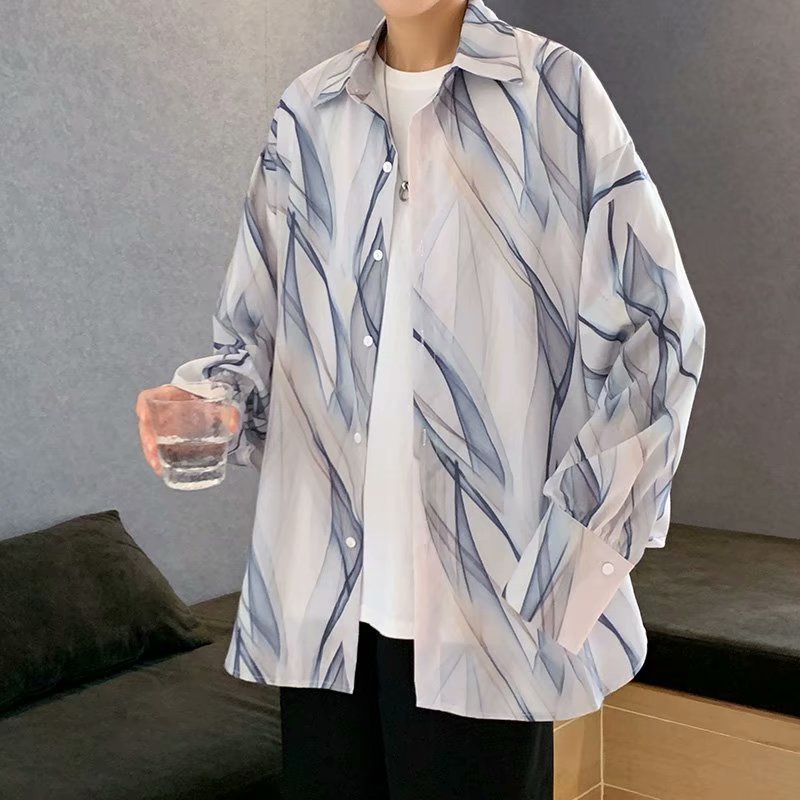 韓版不規則長袖襯衫 薄款 滿版 花襯衫 百搭 日式 寬鬆襯衫 情侶襯衫 長袖 襯衫(GJC08)