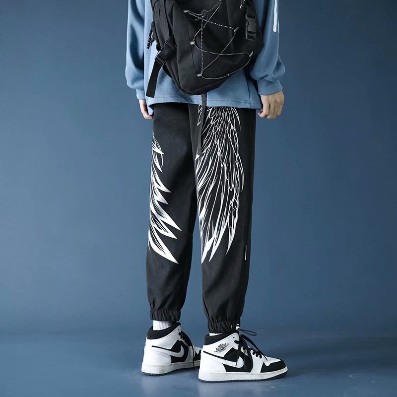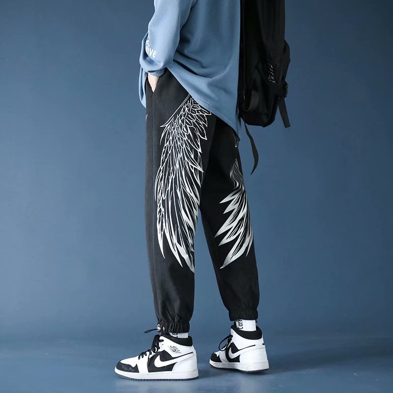 休閒褲男 潮牌翅膀印花寬鬆長褲 韓版 潮流 九分褲 休閒小腳褲 (YC925)【壹號站】