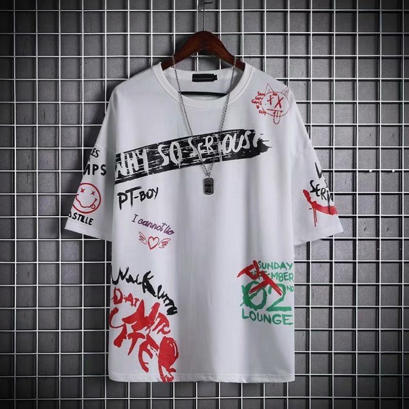 潮男短袖T恤男潮牌ins滿版上衣寬鬆短袖潮流青年百搭5五分袖歐美T恤 短T 情侶 T恤(WLW601)【壹號站】