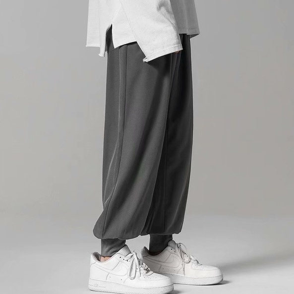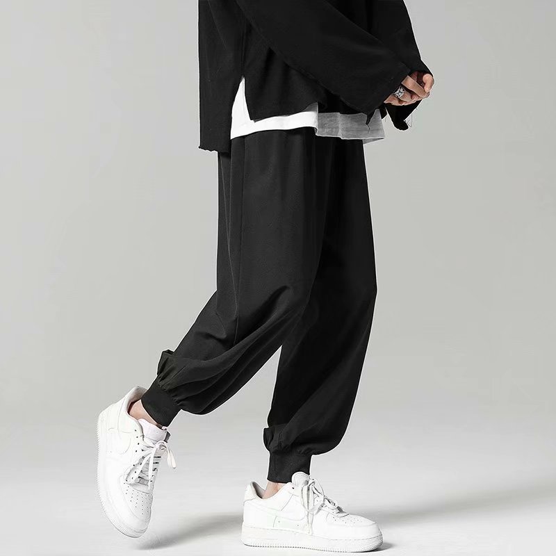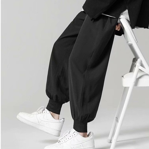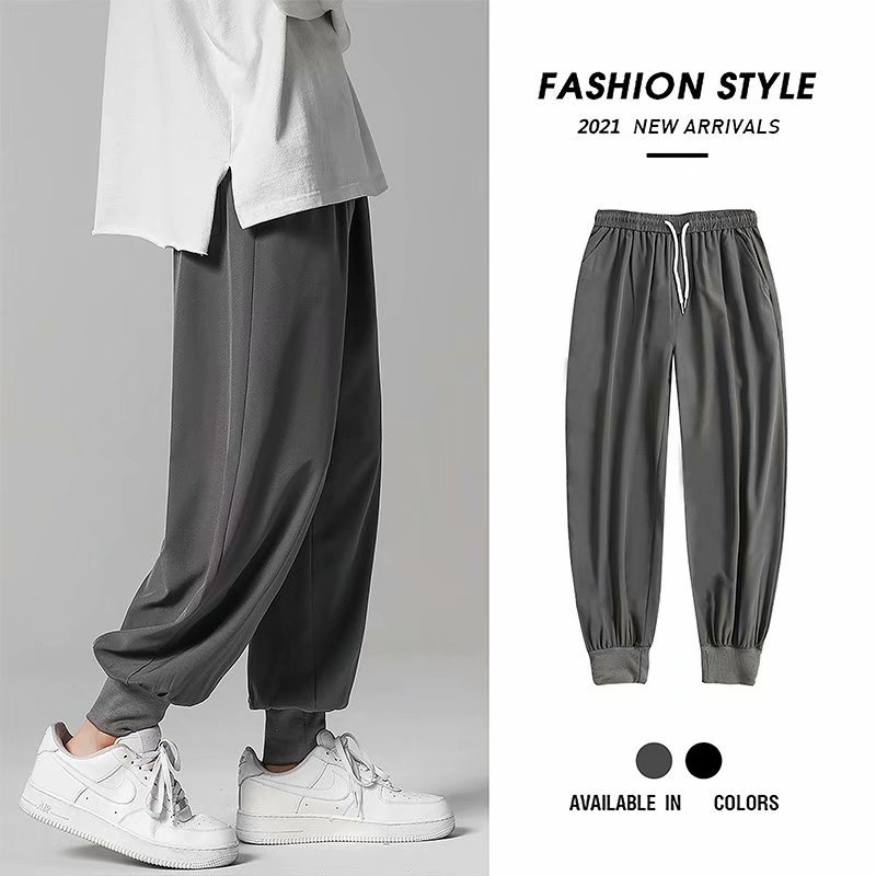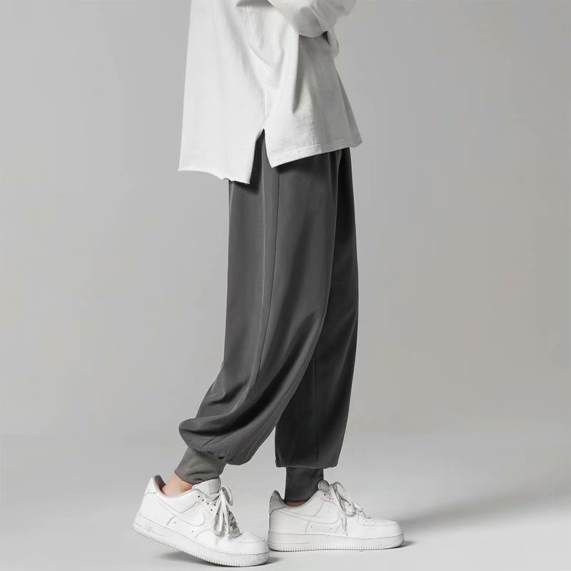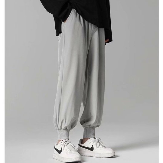 夏季寬鬆降溫冰絲束腳褲 冰絲裤日韓流行新款縮口褲 型男休閒長褲 冰絲褲 寬褲 降溫褲(ZSZ10)【壹號站】