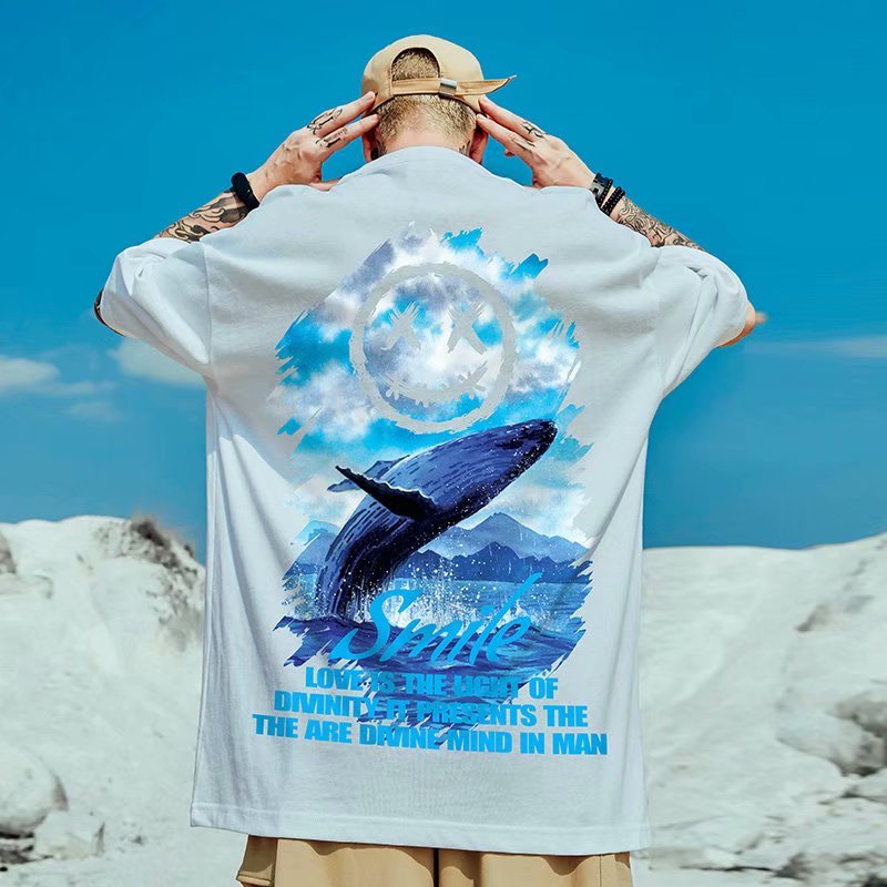 M-5XL潮流夏季個性印花短袖T恤 寬鬆情侶 個性印花五分袖T恤衫 韓版時尚潮流情侶裝百搭短t 男女T恤(GFT517)
