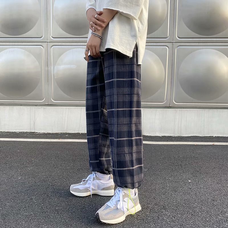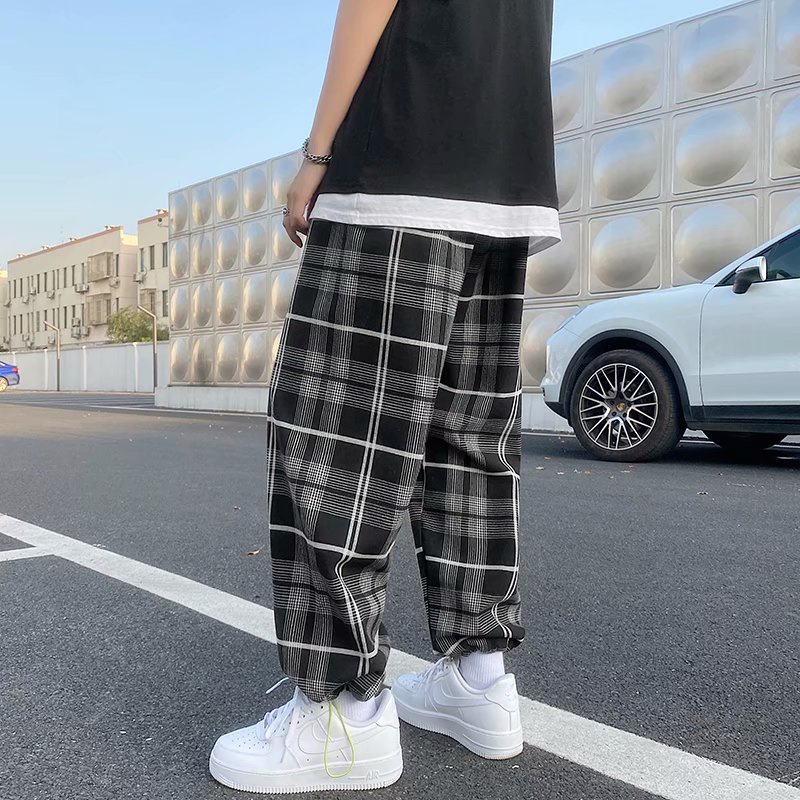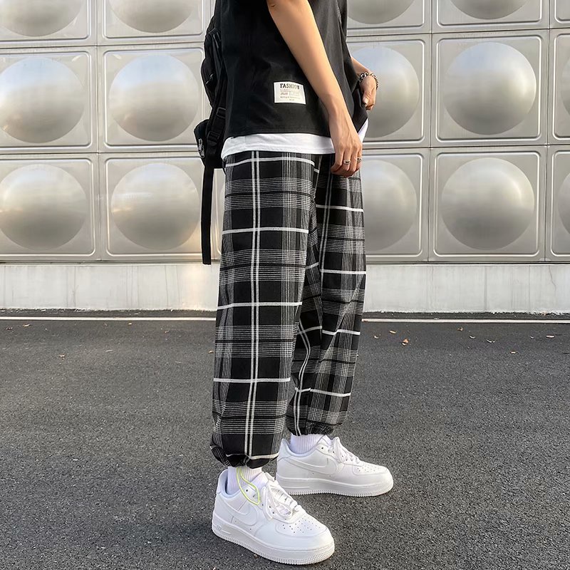 格子褲 夏季男士褲子黑白格青年休閒褲男生褲格子九分褲縮口褲 格紋褲(GMA24)【壹號站】