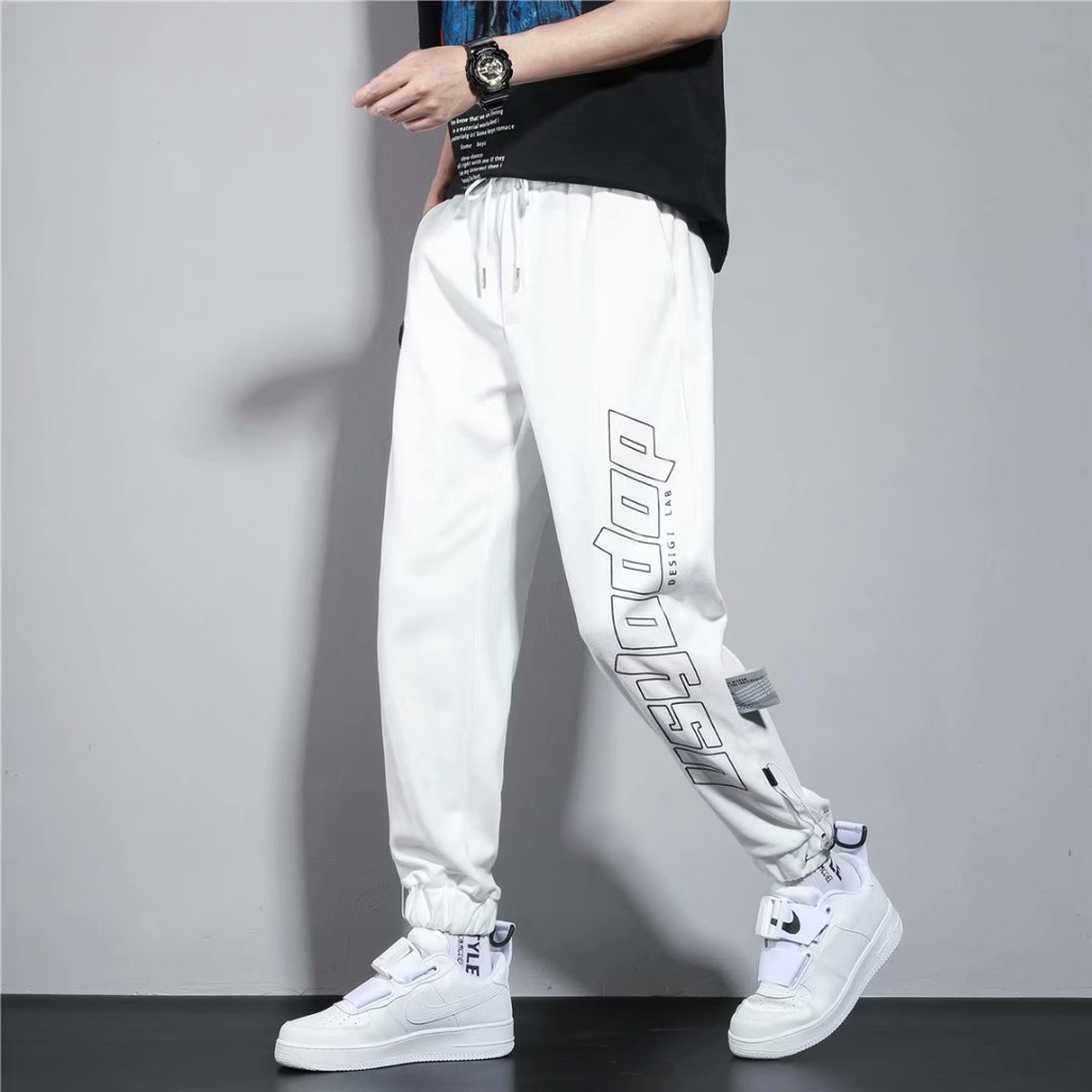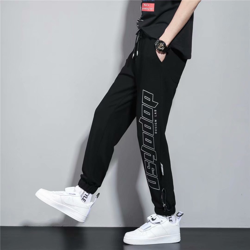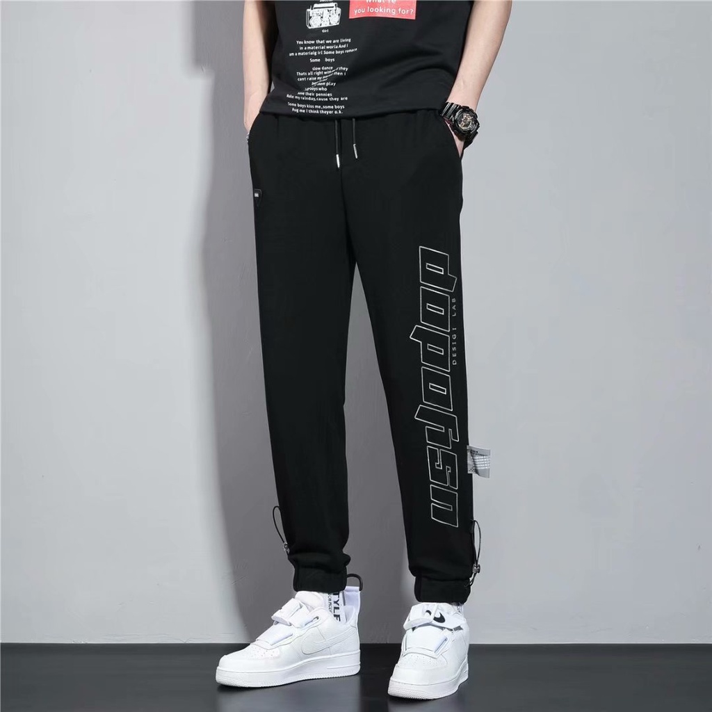 束腳褲 男 潮牌 薄款 印花褲腳抽繩 收口衛褲潮流寬鬆百搭 運動直筒休閒九分褲 (YMA318)【壹號站】