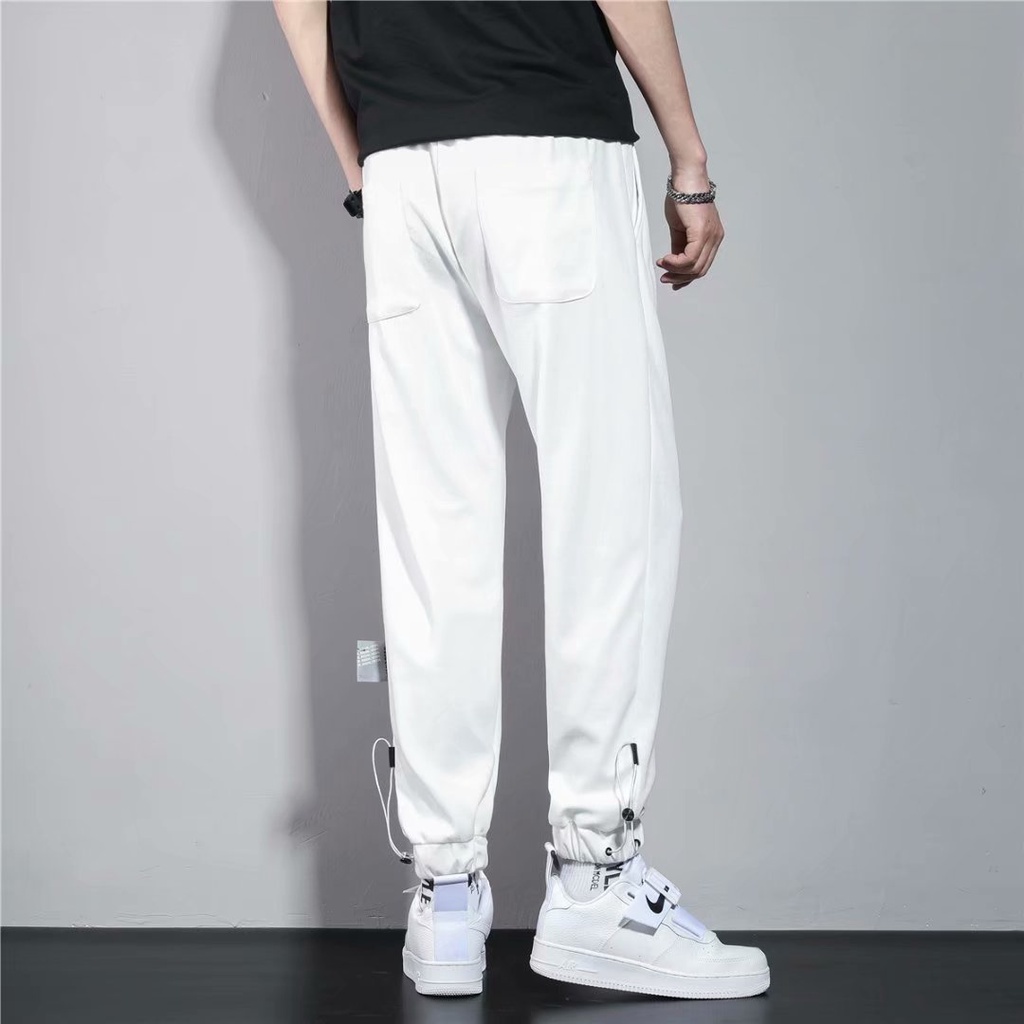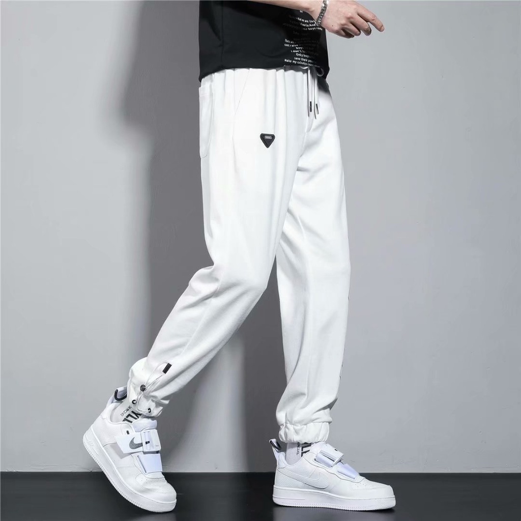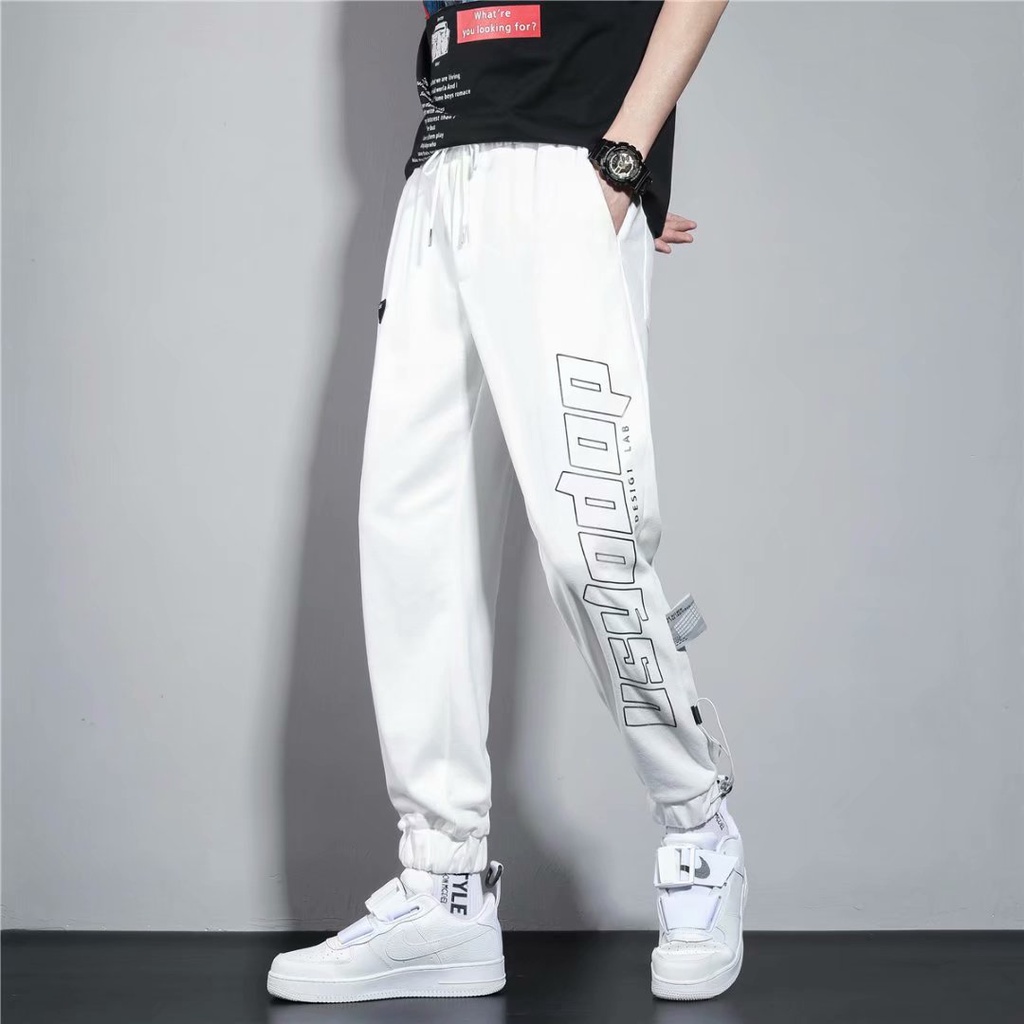 束腳褲 男 潮牌 薄款 印花褲腳抽繩 收口衛褲潮流寬鬆百搭 運動直筒休閒九分褲 (YMA318)【壹號站】