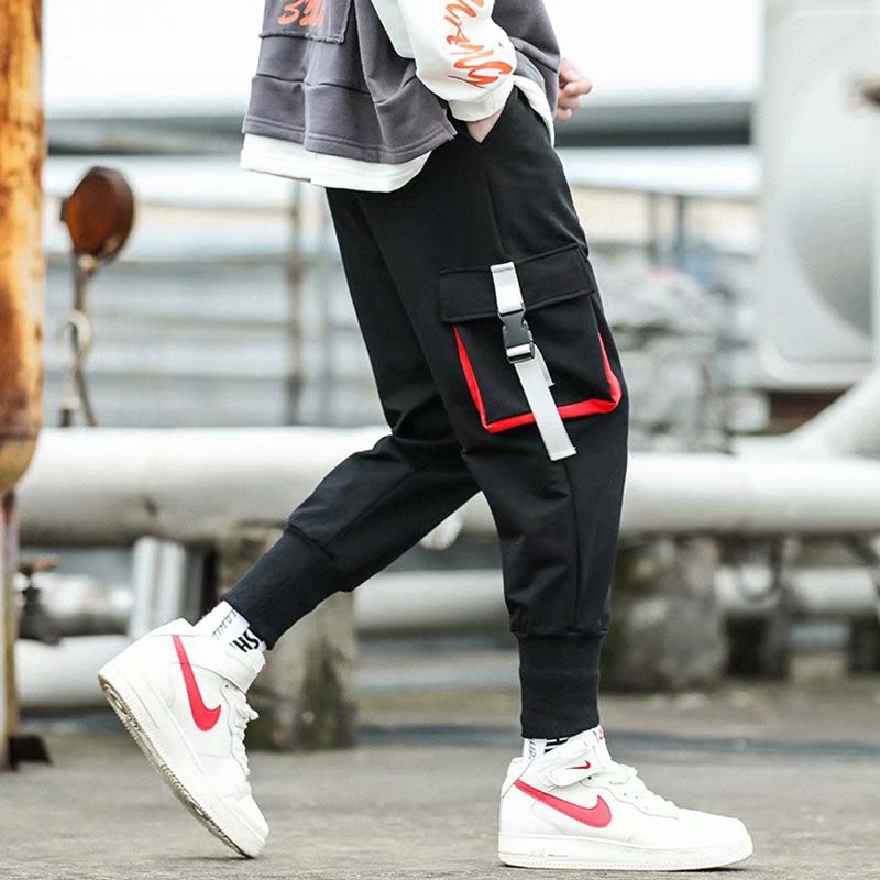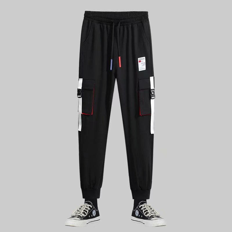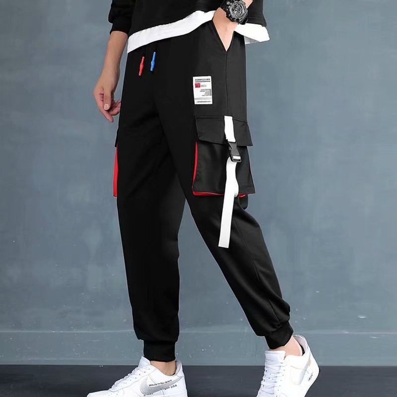 工作褲男 多口袋拼接長褲 薄款 潮牌側口袋工裝褲 九分褲 韓版男百搭長褲 哈倫褲 工作褲 束腳褲(XK67)