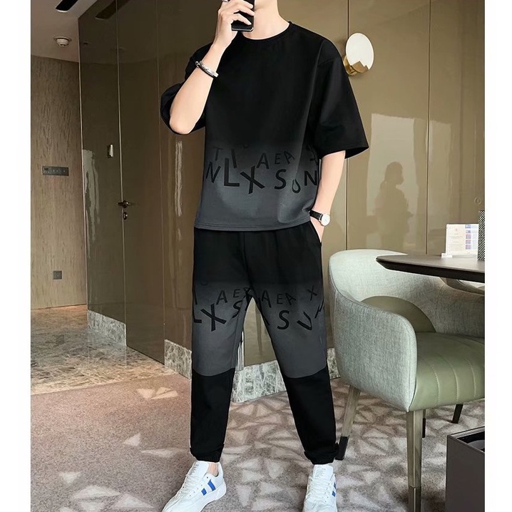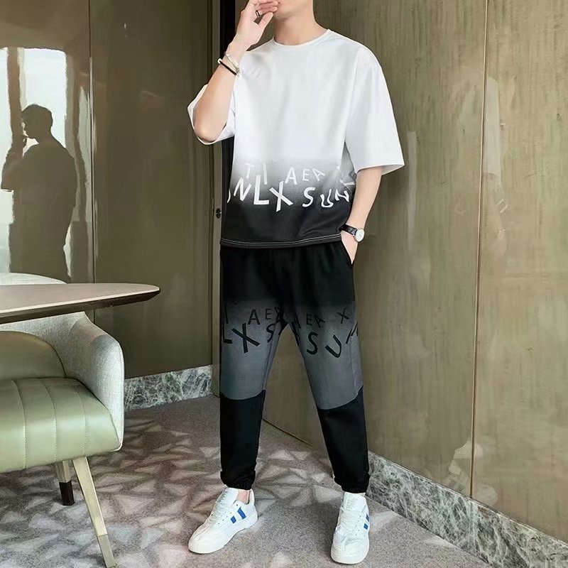漸層潮牌套裝 男生運動短袖套裝 夏季男薄休閒 潮流印花圓領短套裝運動 套裝(TZ507)【壹號站】